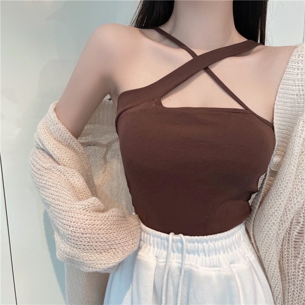 【台灣發貨】韓版交叉露肩吊帶背心 小可愛 背心 衣服 女裝 上衣【V169】-圖片-7