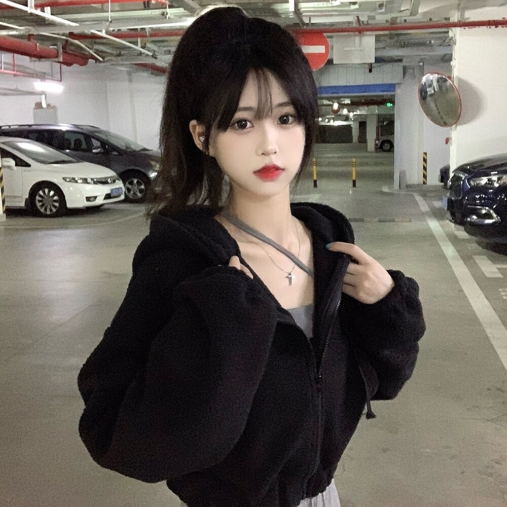 【台灣發貨】韓版毛絨連帽短版外套 外套 防曬外套 女裝 上衣 衣服 【J180】 封面照片