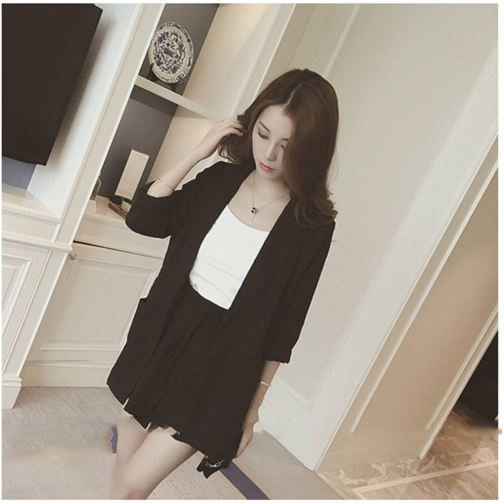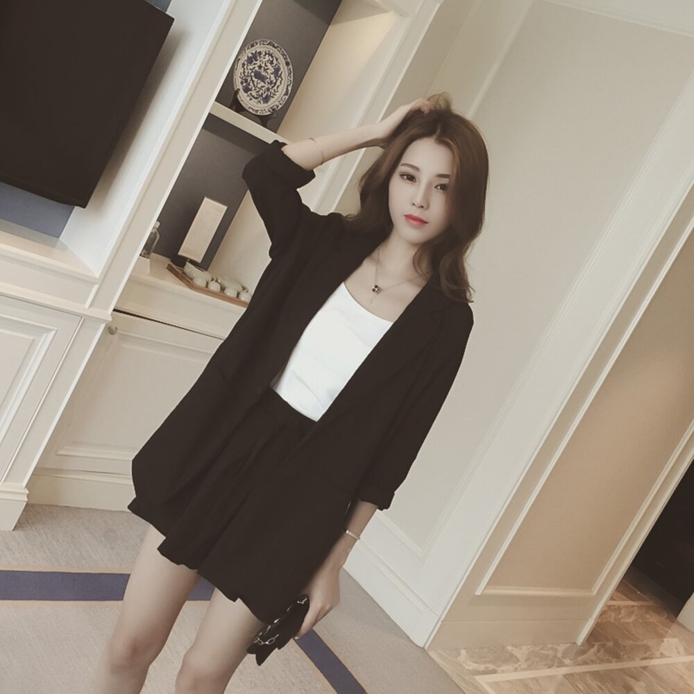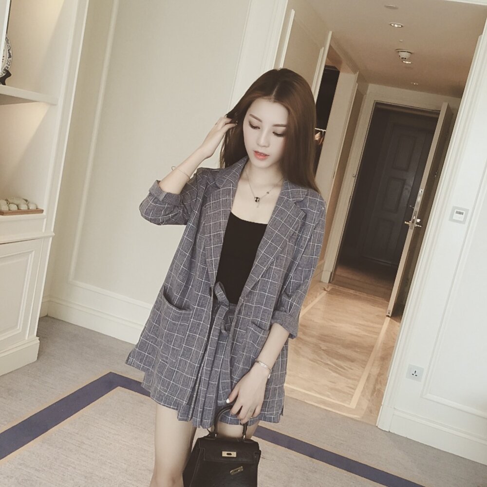 格子九分袖一字扣西裝+鬆緊腰短褲 千萬不要錯過囉~