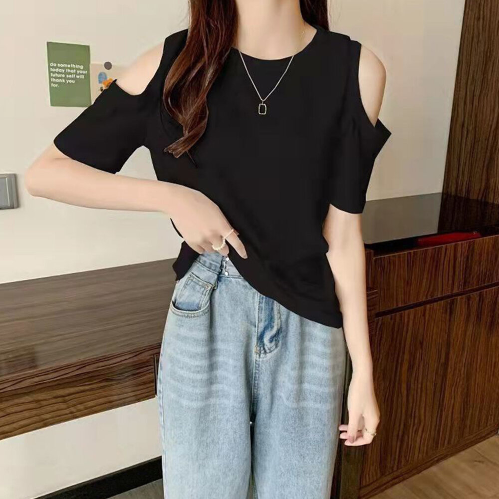 【台灣發貨】韓版顯瘦露肩短袖上衣 衣服 女裝 t恤 短袖t恤 上衣【T580】-圖片-5