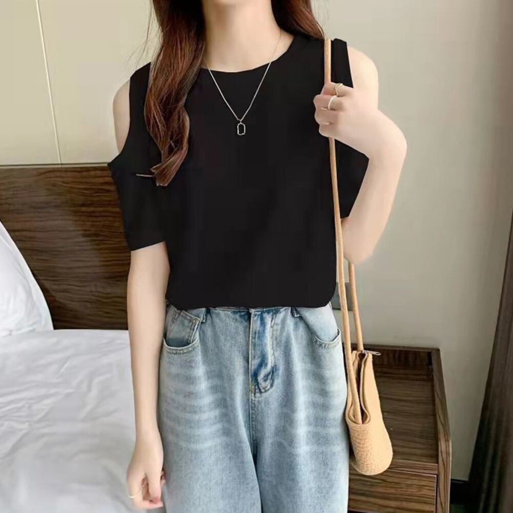 【台灣發貨】韓版顯瘦露肩短袖上衣 衣服 女裝 t恤 短袖t恤 上衣【T580】-圖片-1