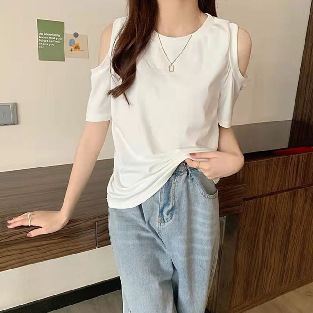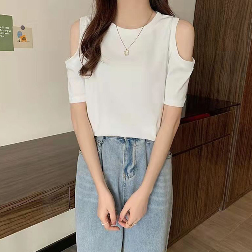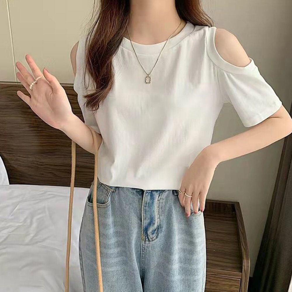 【台灣發貨】韓版顯瘦露肩短袖上衣 衣服 女裝 t恤 短袖t恤 上衣【T580】-圖片-2