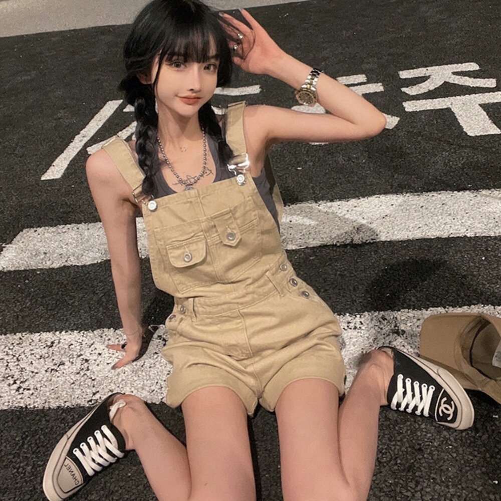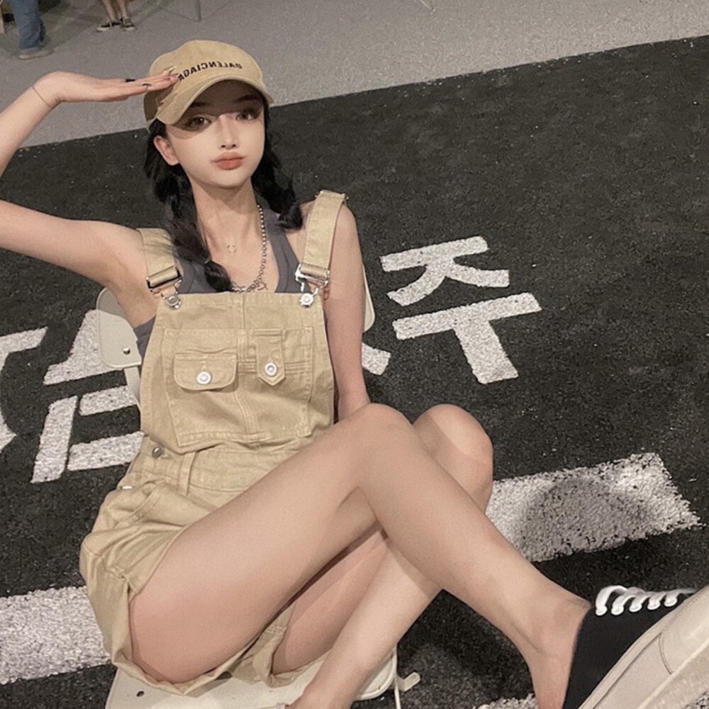 【台灣發貨】韓版復古工裝高腰牛仔背帶短褲 連身裙 吊帶裙 吊帶褲 女裝【S193】-圖片-1
