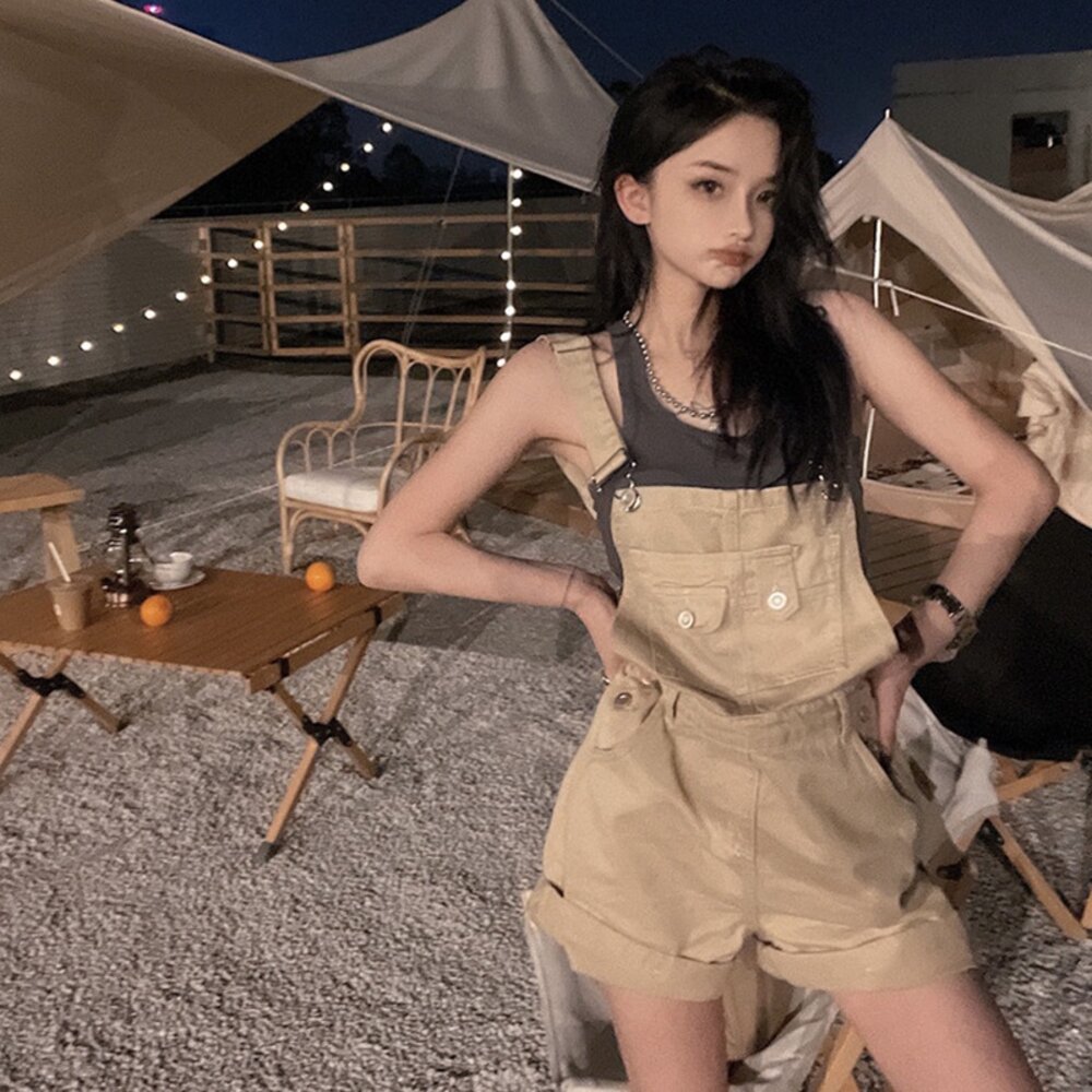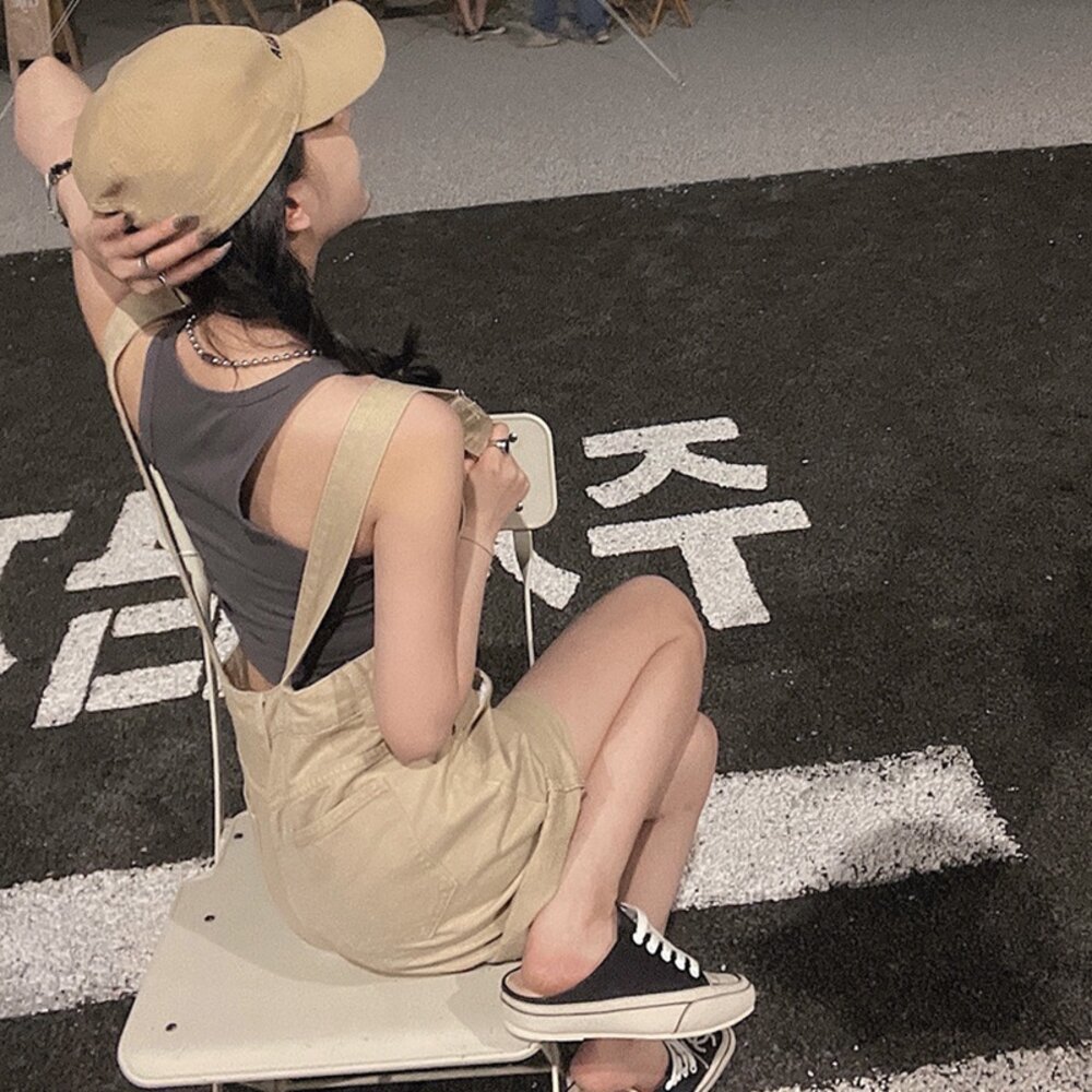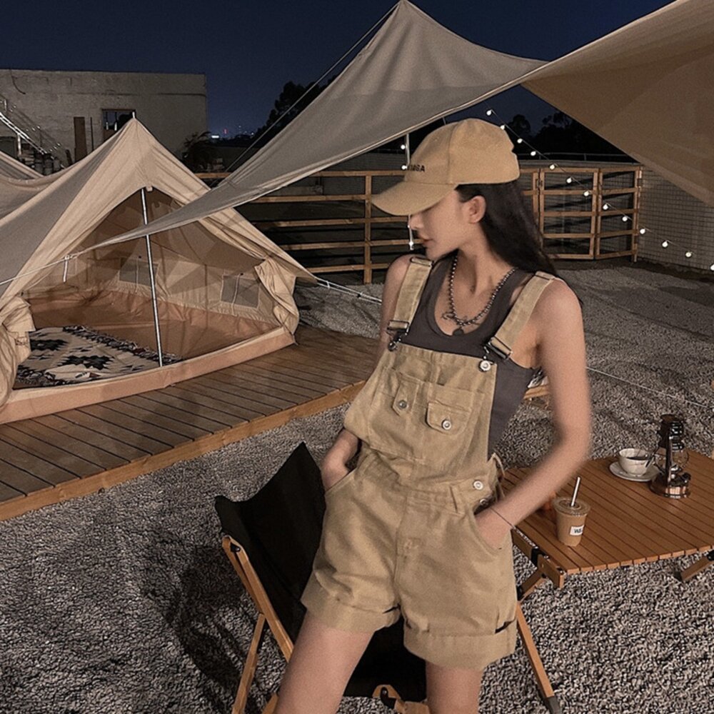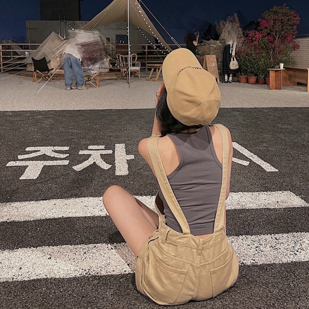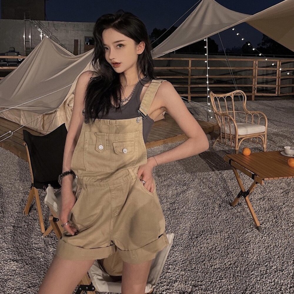 【台灣發貨】韓版復古工裝高腰牛仔背帶短褲 連身裙 吊帶裙 吊帶褲 女裝【S193】-圖片-8