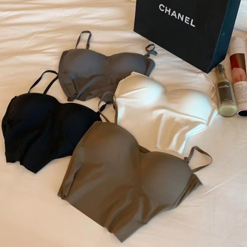 【台灣發貨】韓版冰絲一字肩V領美背短版背心 帶胸墊免穿內衣 小可愛 背心 衣服 女裝 上衣【V259】-圖片-1