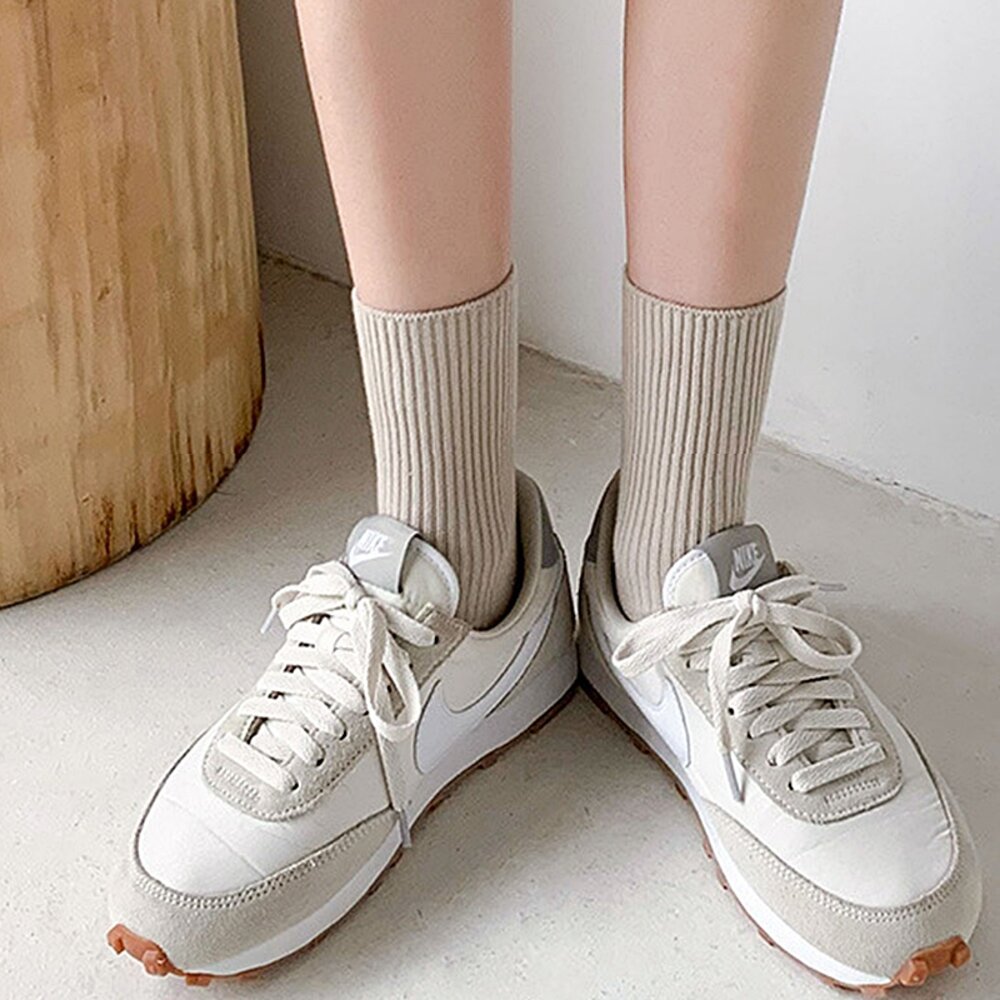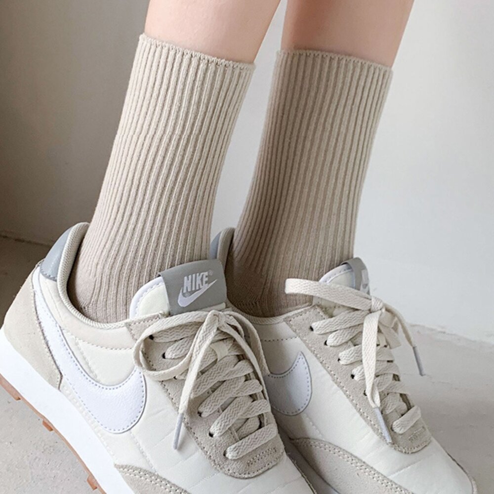 素色奶茶色系堆堆襪-正白 現貨 55546 件