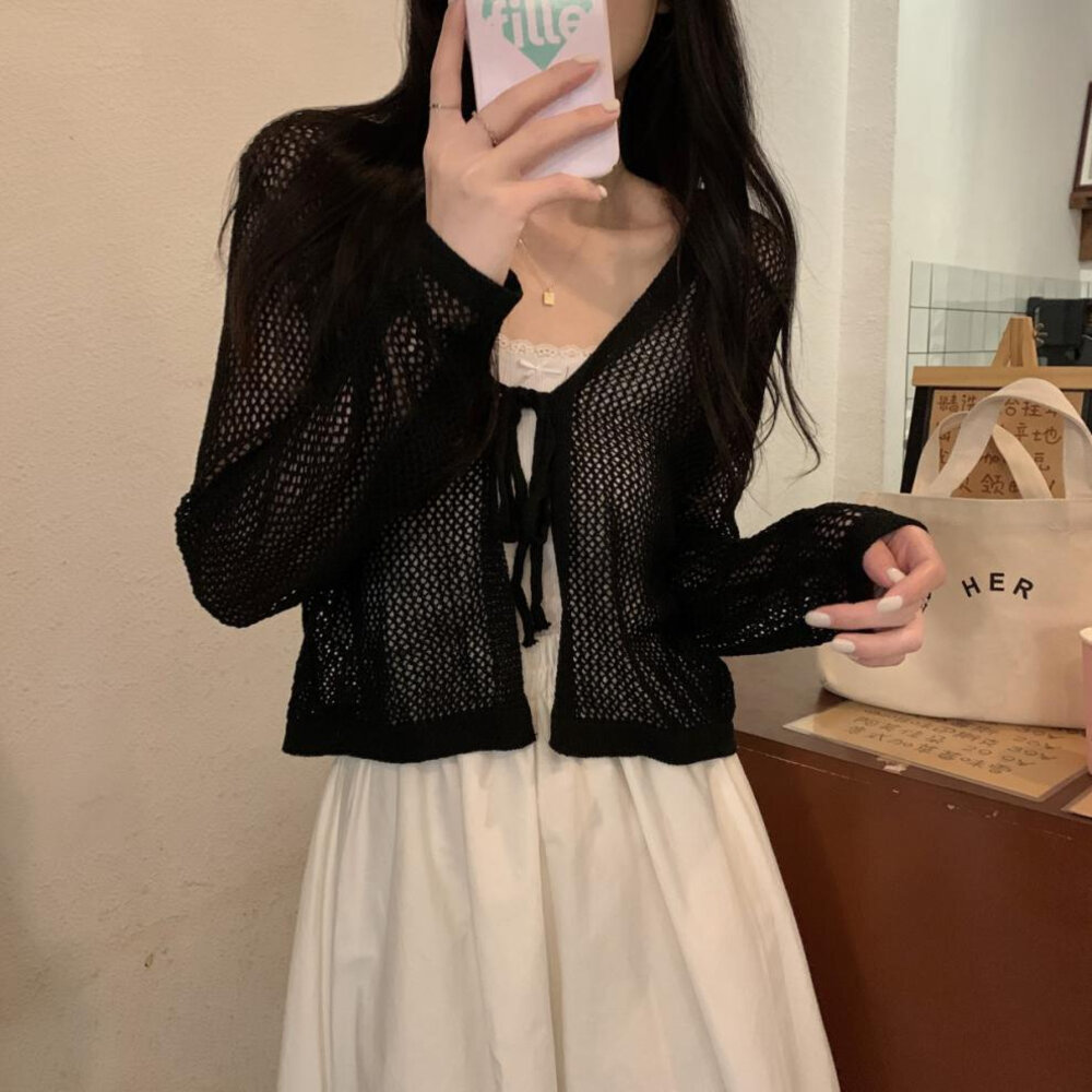 【台灣發貨】韓版法式V領薄款針織防曬外套 外套 防曬外套 女裝 上衣 衣服【J281】