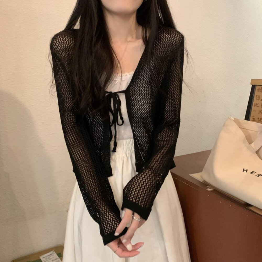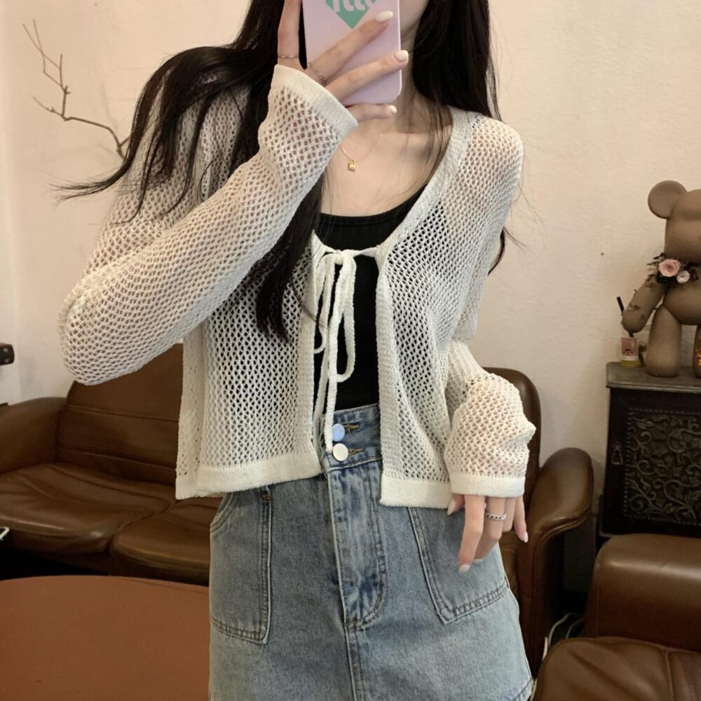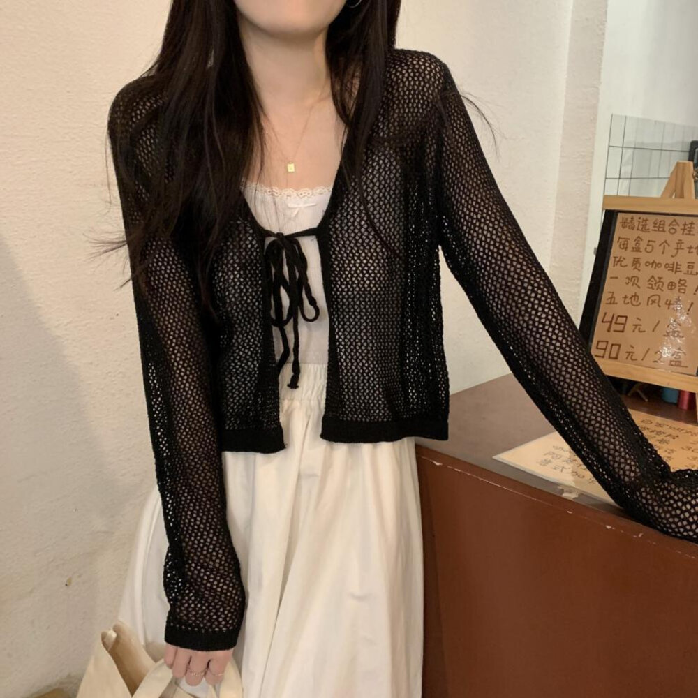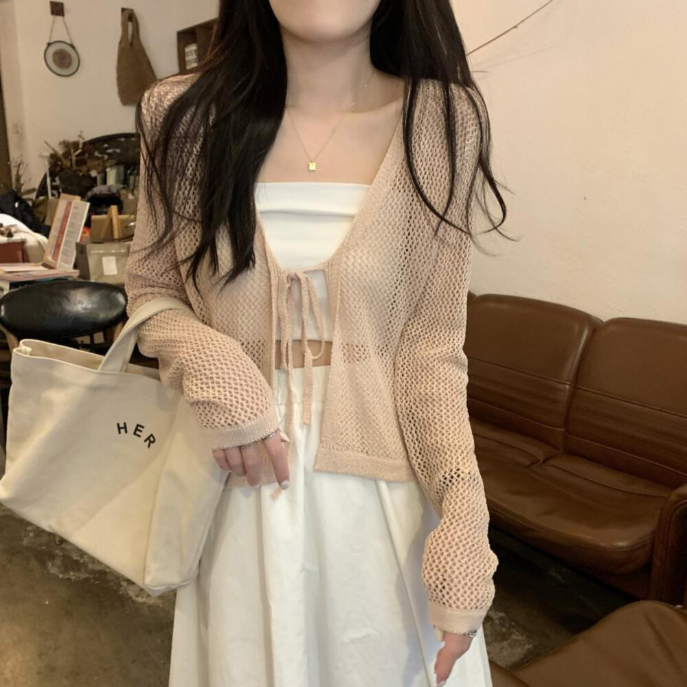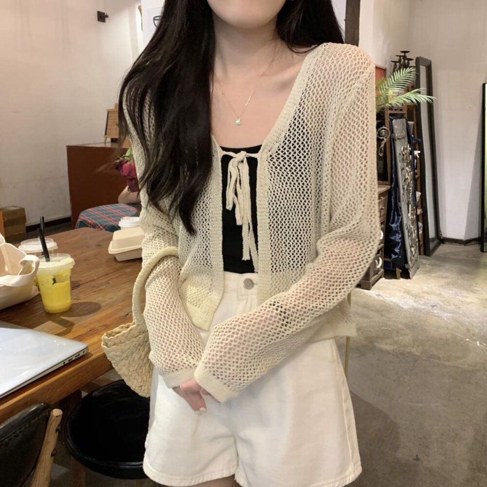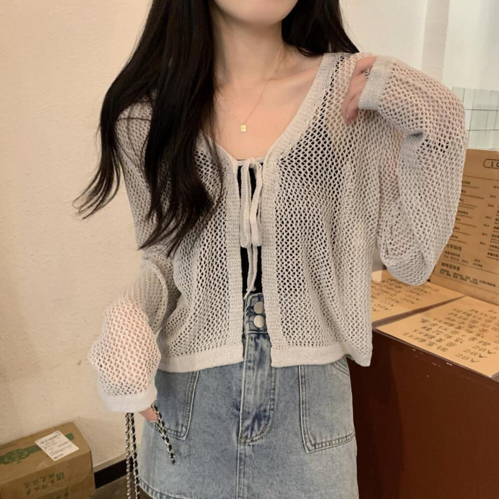 【台灣發貨】韓版法式V領薄款針織防曬外套 外套 防曬外套 女裝 上衣 衣服【J281】-圖片-1