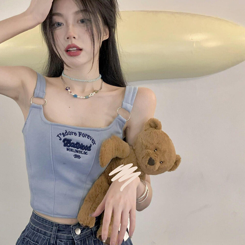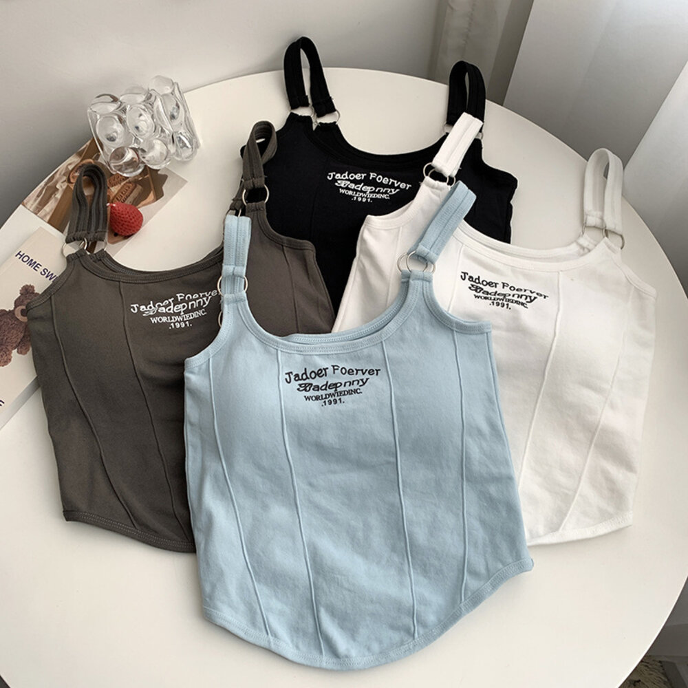 【台灣發貨】韓版不規則字母圓環吊帶背心 帶胸墊免穿內衣 小可愛 背心 衣服 女裝 上衣【V307】