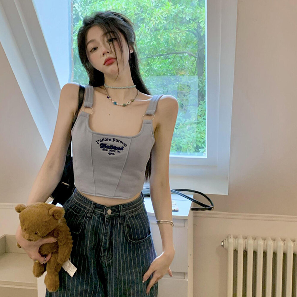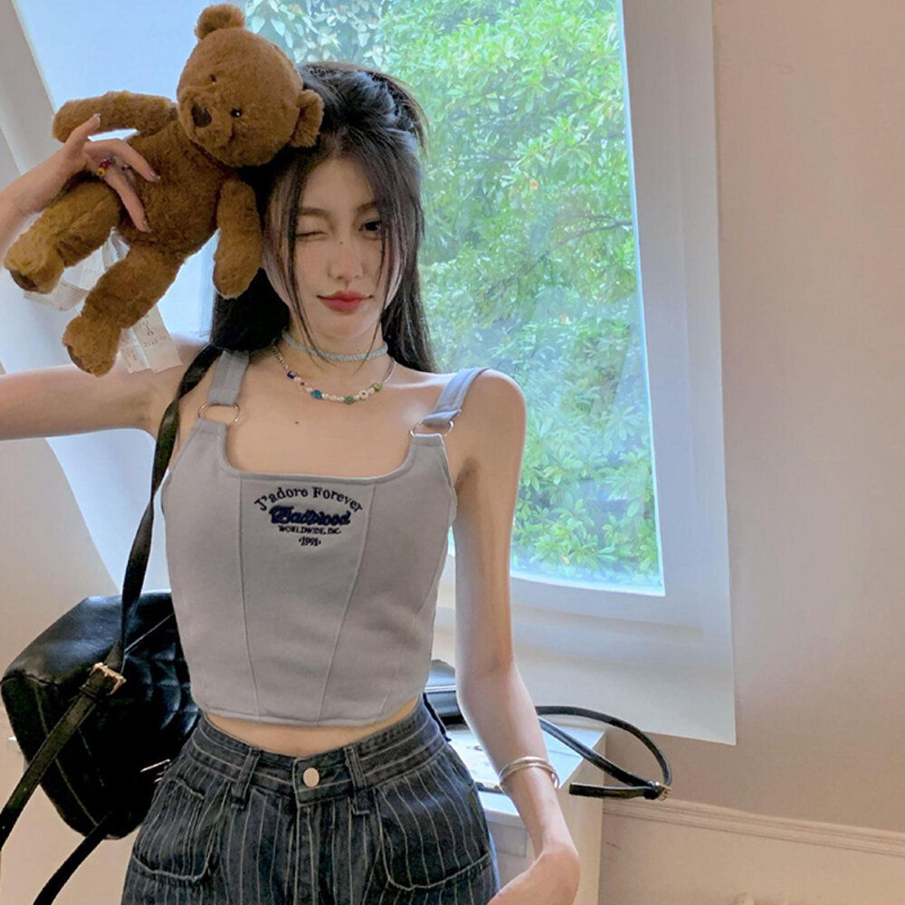 【台灣發貨】韓版不規則字母圓環吊帶背心 帶胸墊免穿內衣 小可愛 背心 衣服 女裝 上衣【V307】-圖片-5
