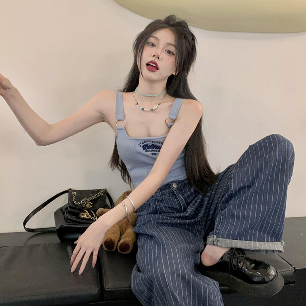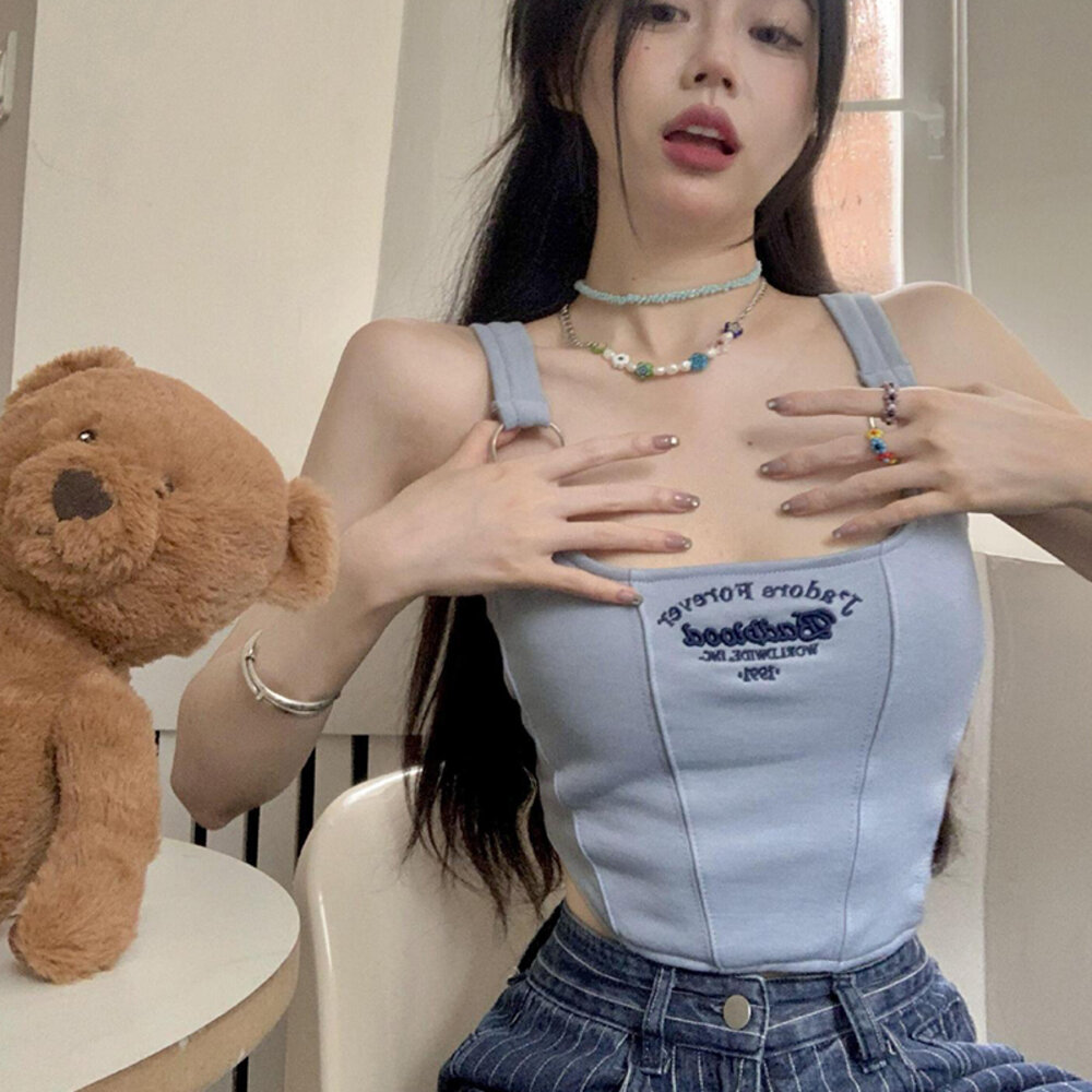 【台灣發貨】韓版不規則字母圓環吊帶背心 帶胸墊免穿內衣 小可愛 背心 衣服 女裝 上衣【V307】-圖片-8