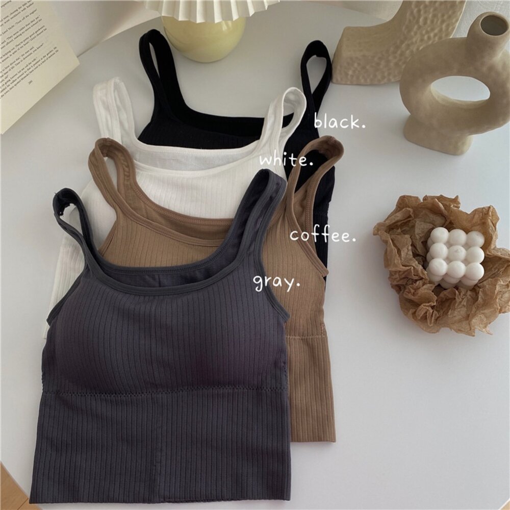 帶胸墊免穿內衣 小可愛 背心 衣服 女裝 上衣【V166】