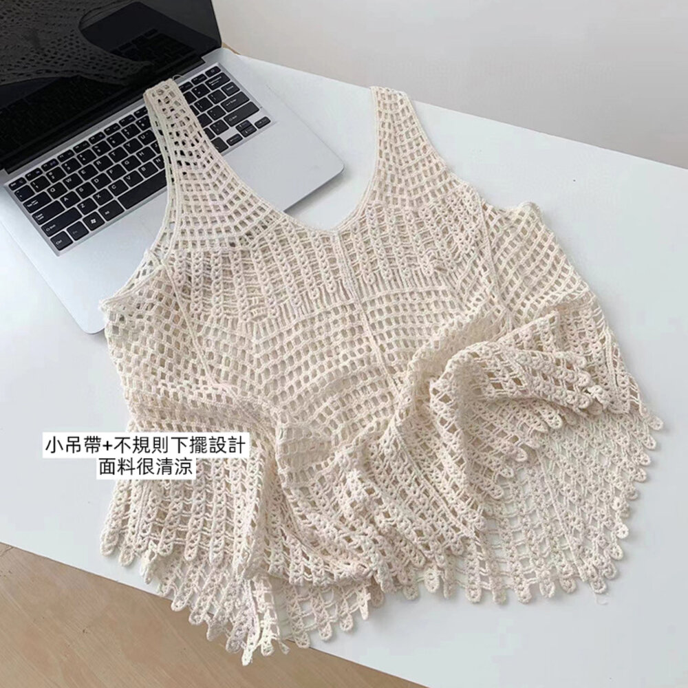 【台灣發貨】韓版鏤空寬鬆慵懶風針織背心 小可愛 背心 衣服 女裝 上衣【V302】