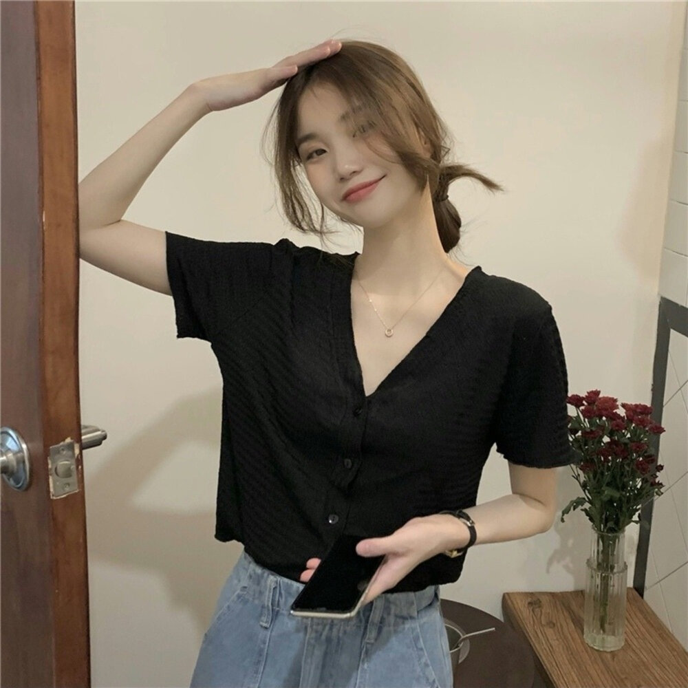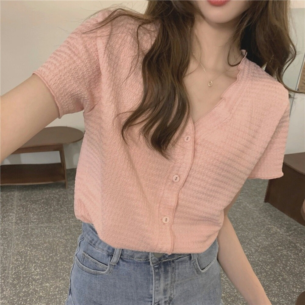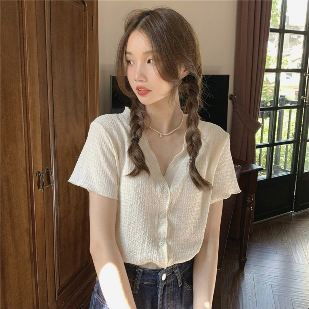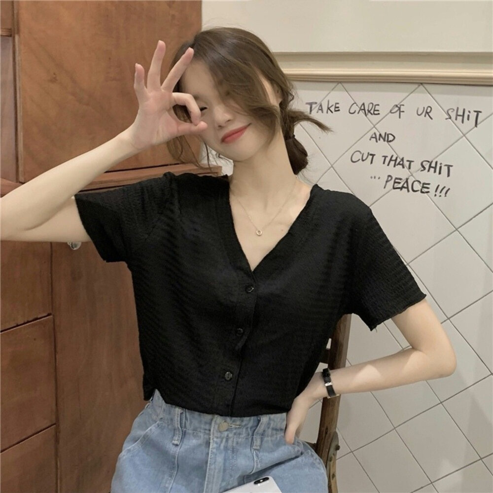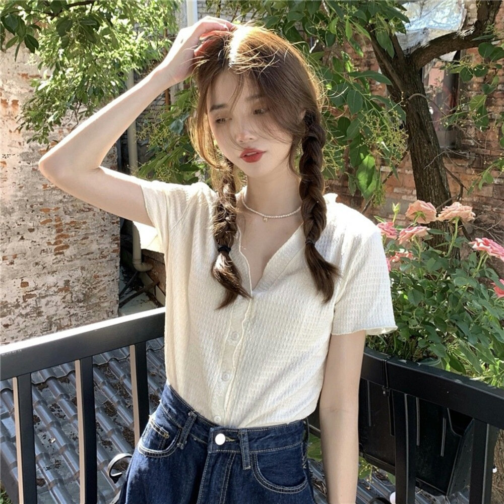 尺寸: 衣長49 胸圍88 肩寬35 袖長19 材質:棉+聚酯纖維 商品尺寸皆為手工測量,誤差1-3cm皆為正常範圍 若商品有些線頭或是未開眼,再麻煩美女自行修剪以及開扣眼唷 任何衣服建議單獨洗滌,避免造成衣物顏色互染的情形 布料首次洗滌時易釋出染劑,屬於正常現象 商品勿長時間浸泡、勿使用漂白水、勿使用烘衣機