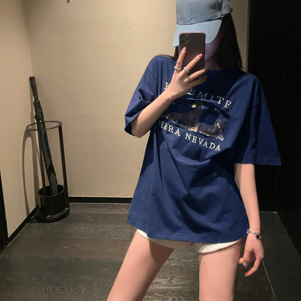 【台灣發貨】韓版圖案寬鬆短袖上衣 衣服 女裝 t恤 短袖t恤 上衣【T542】-圖片-5