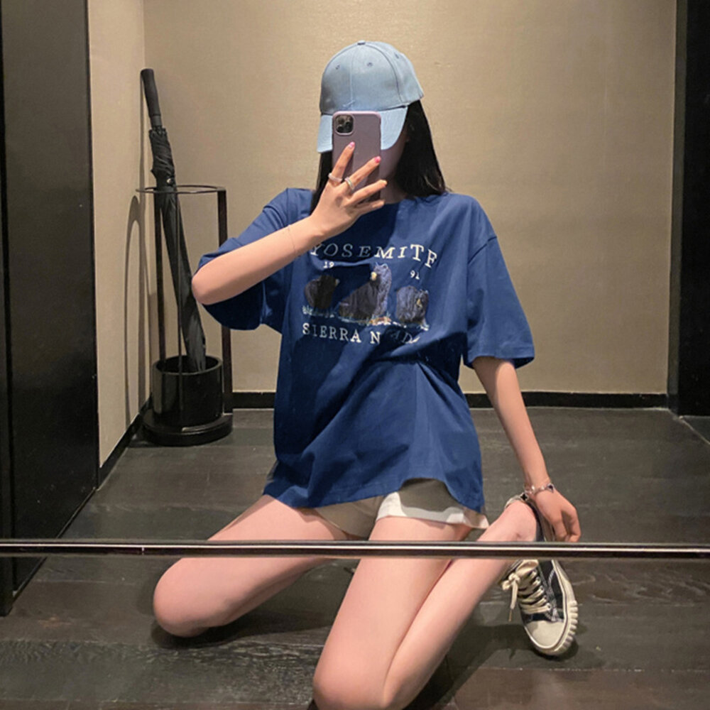【台灣發貨】韓版圖案寬鬆短袖上衣 衣服 女裝 t恤 短袖t恤 上衣【T542】 封面照片