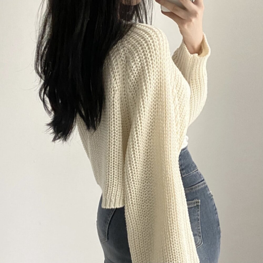 【台灣發貨】韓版法式小眾氣質燈籠袖短版針織外套 外套 防曬外套 女裝 上衣 衣服【J195】-圖片-4