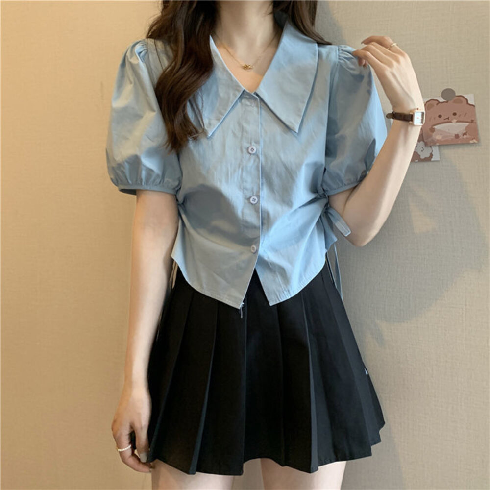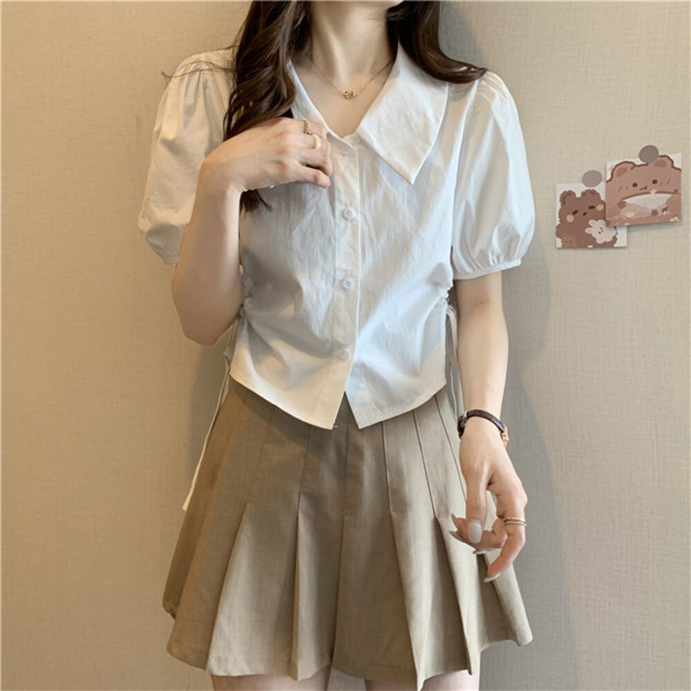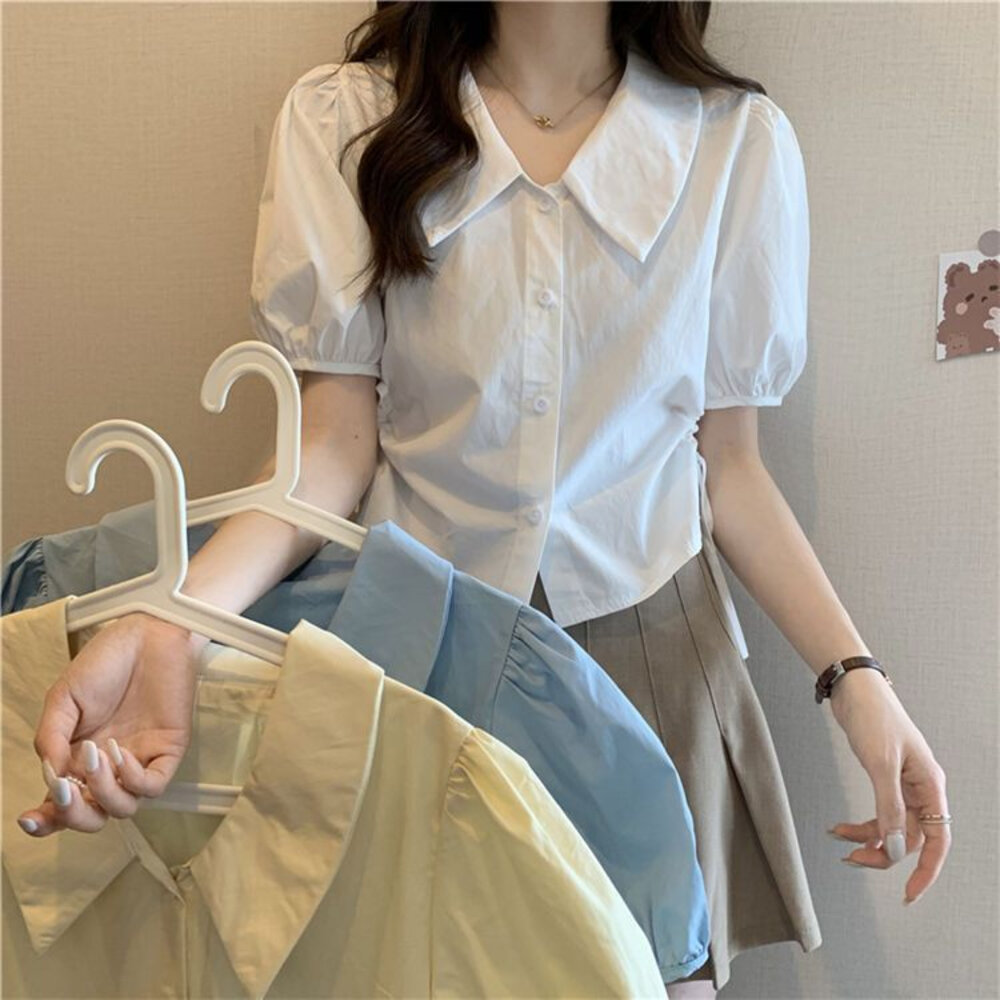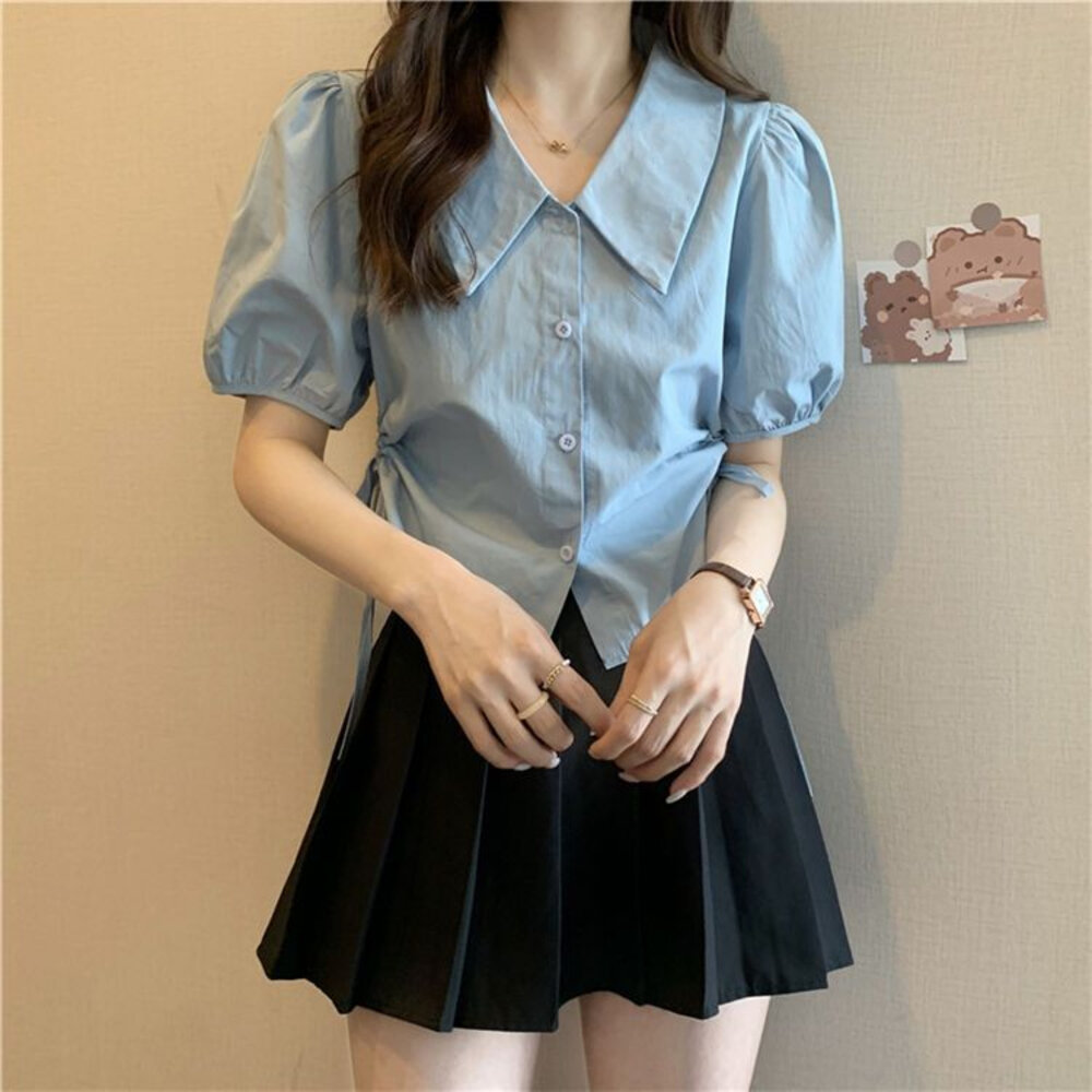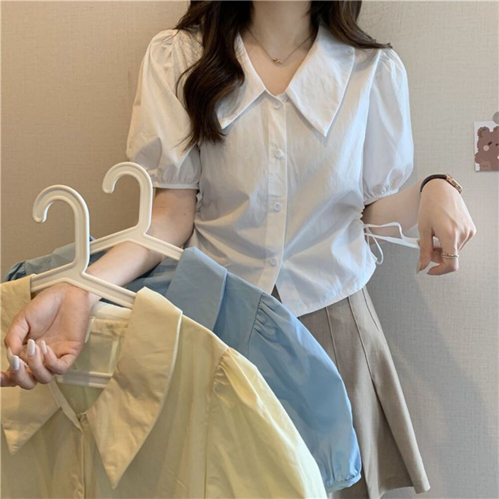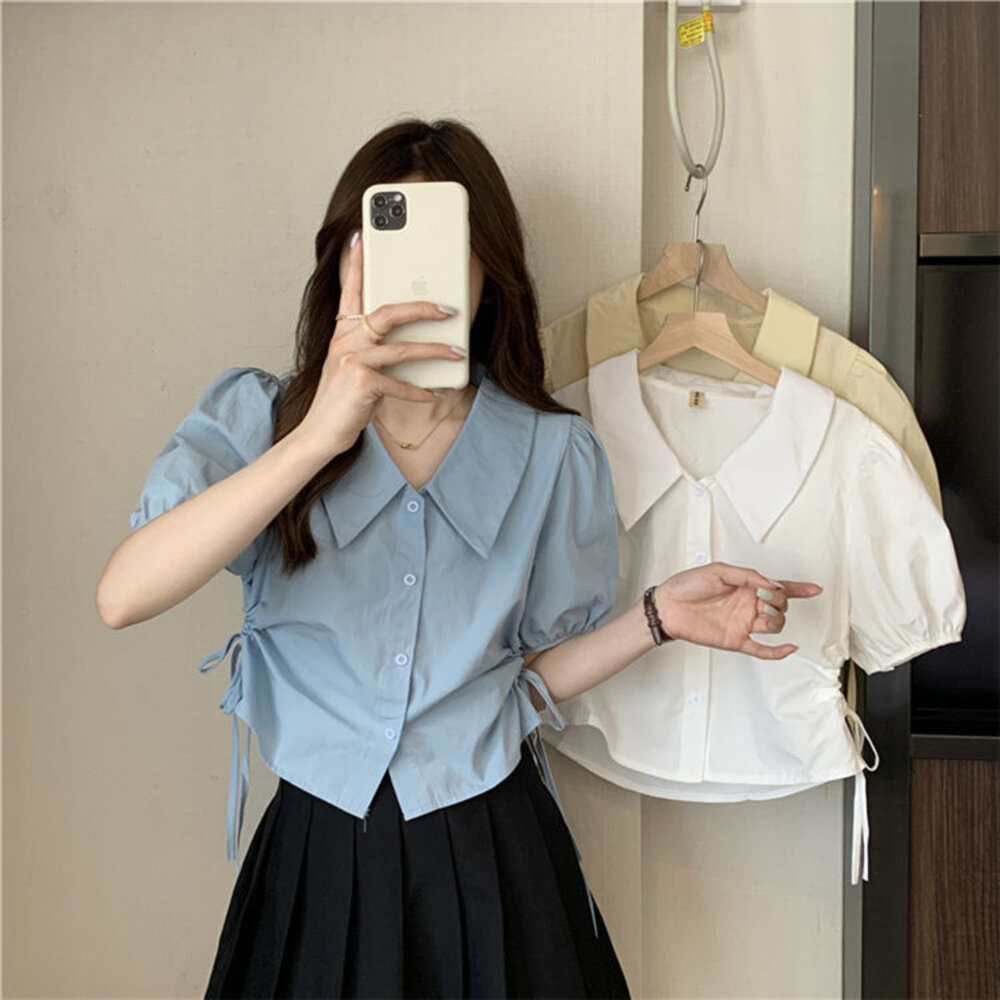 尺寸: 衣長44 肩寬37 胸圍100 袖長27 材質:棉+聚酯纖維 商品尺寸皆為手工測量,誤差1-3cm皆為正常範圍 若商品有些線頭或是未開眼,再麻煩美女自行修剪以及開扣眼唷 任何衣服建議單獨洗滌,避免造成衣物顏色互染的情形 布料首次洗滌時易釋出染劑,屬於正常現象 商品勿長時間浸泡、勿使用漂白水、勿使用烘衣機