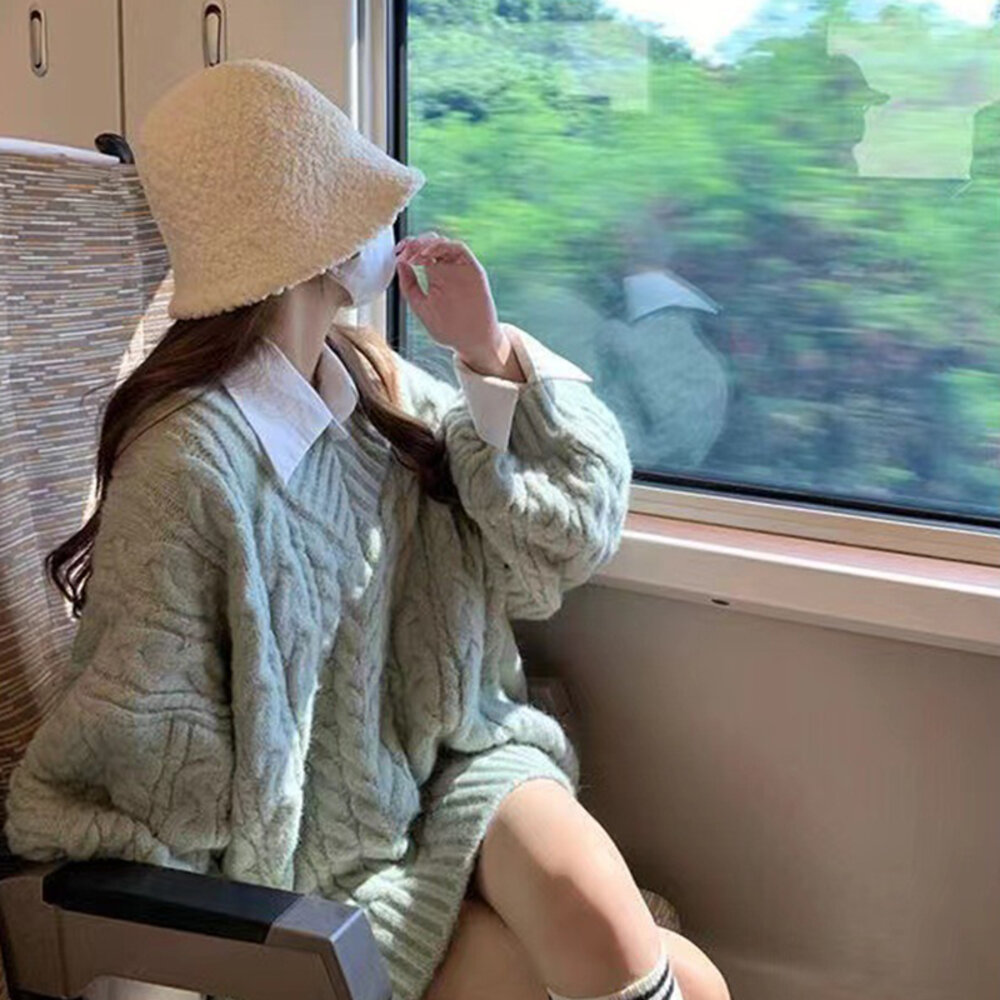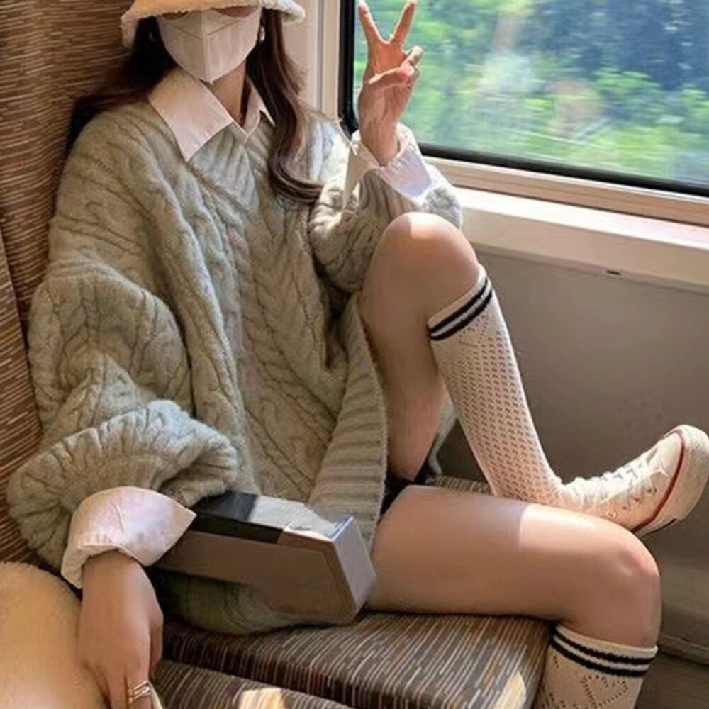 【台灣發貨】韓版顯瘦慵懶風V領長版毛衣 長袖上衣 長袖t恤 衣服 女裝 上衣【W396】 封面照片