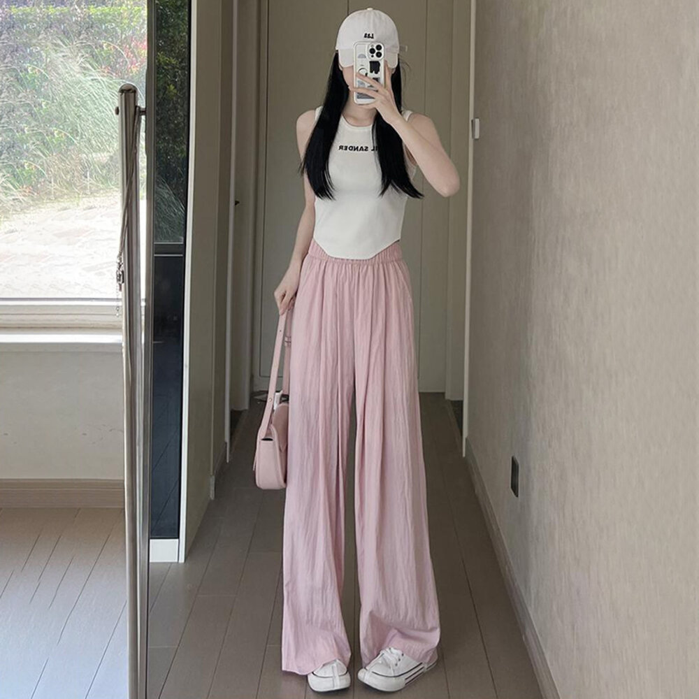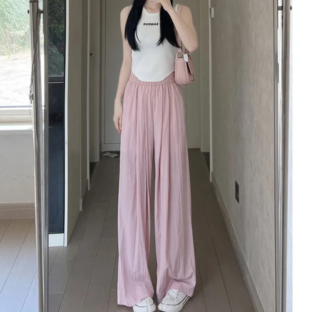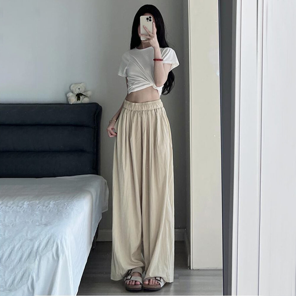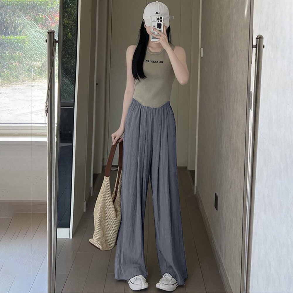 【台灣發貨】韓版高腰垂感慵懶直筒寬褲 寬褲 褲子 女裝【P275】-圖片-6