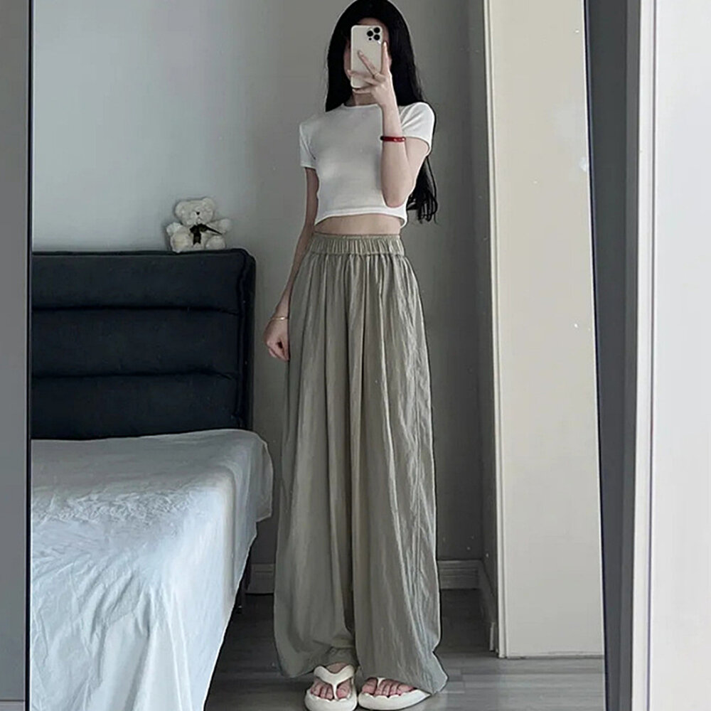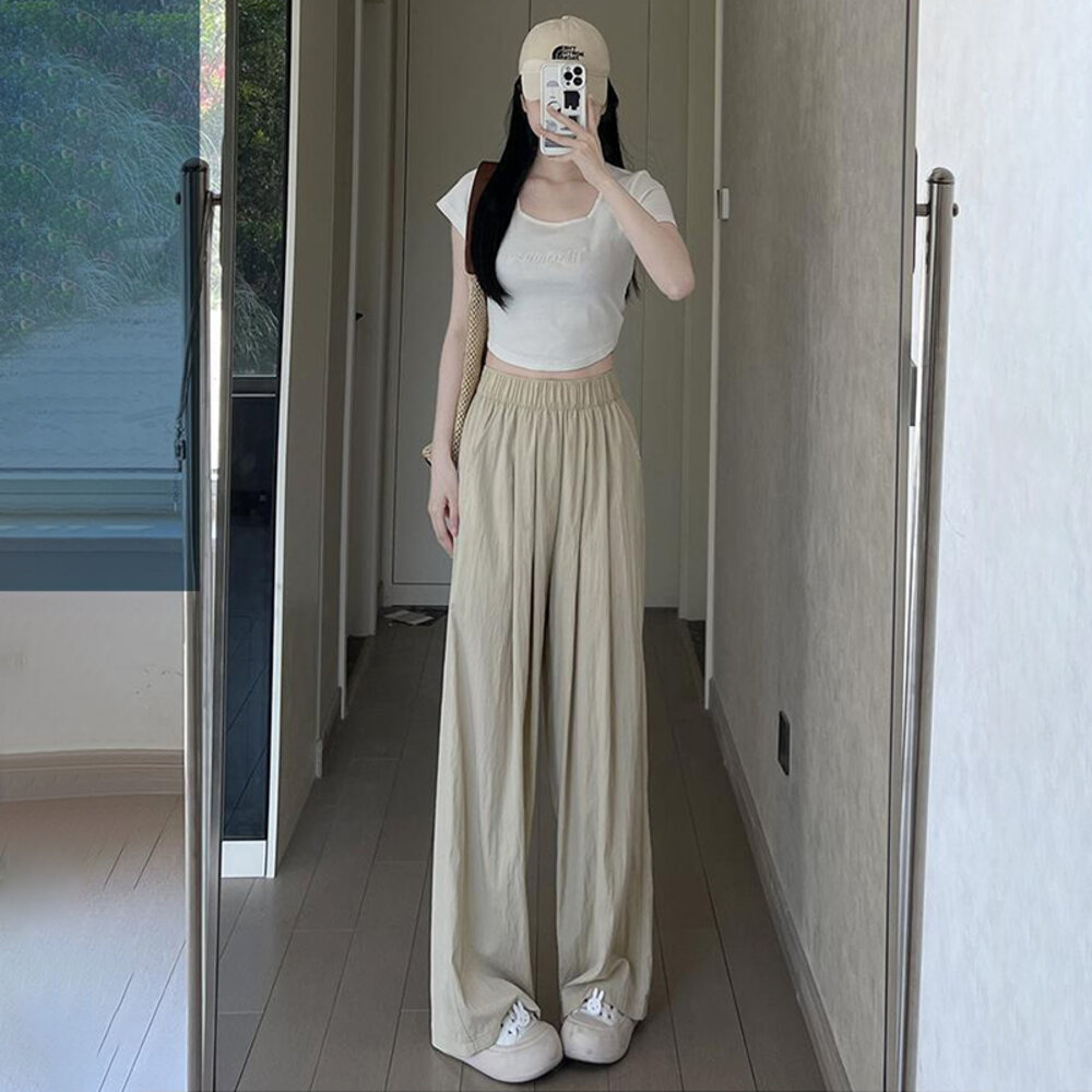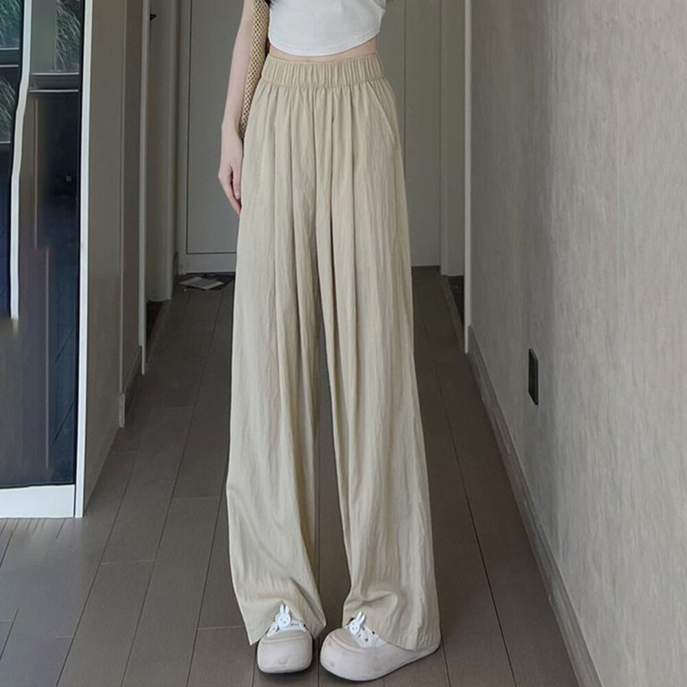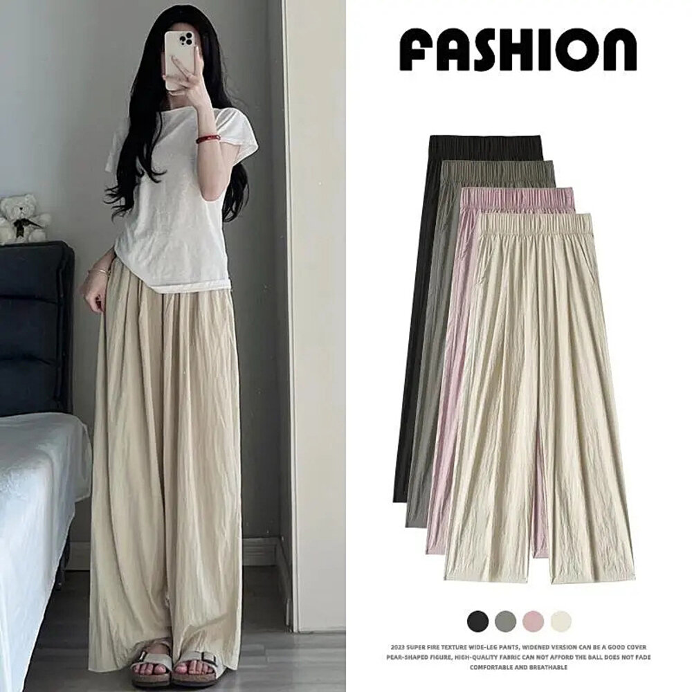 【台灣發貨】韓版高腰垂感慵懶直筒寬褲 寬褲 褲子 女裝【P275】-圖片-1
