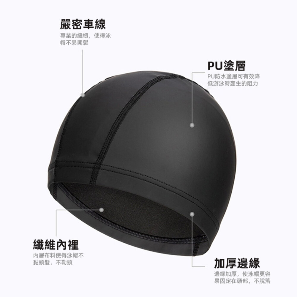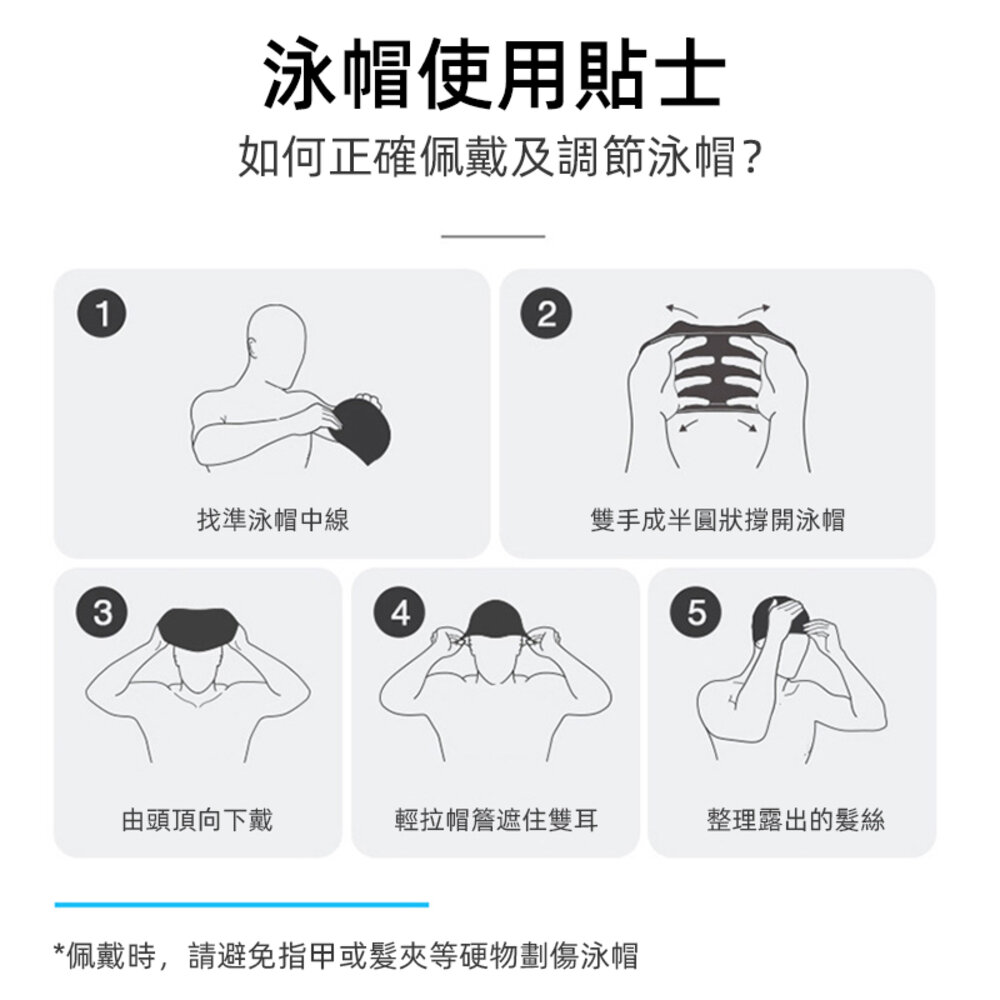 布泳帽尺寸: 帽長25 拉伸30 高16 矽膠泳帽尺寸:帽長18.5 拉伸23 高20
