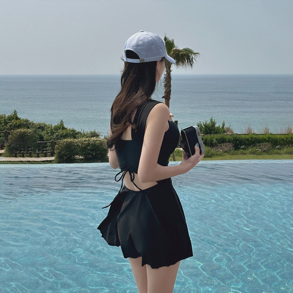 【台灣發貨】韓版露背百褶裙保守泳衣【S133】-圖片-1