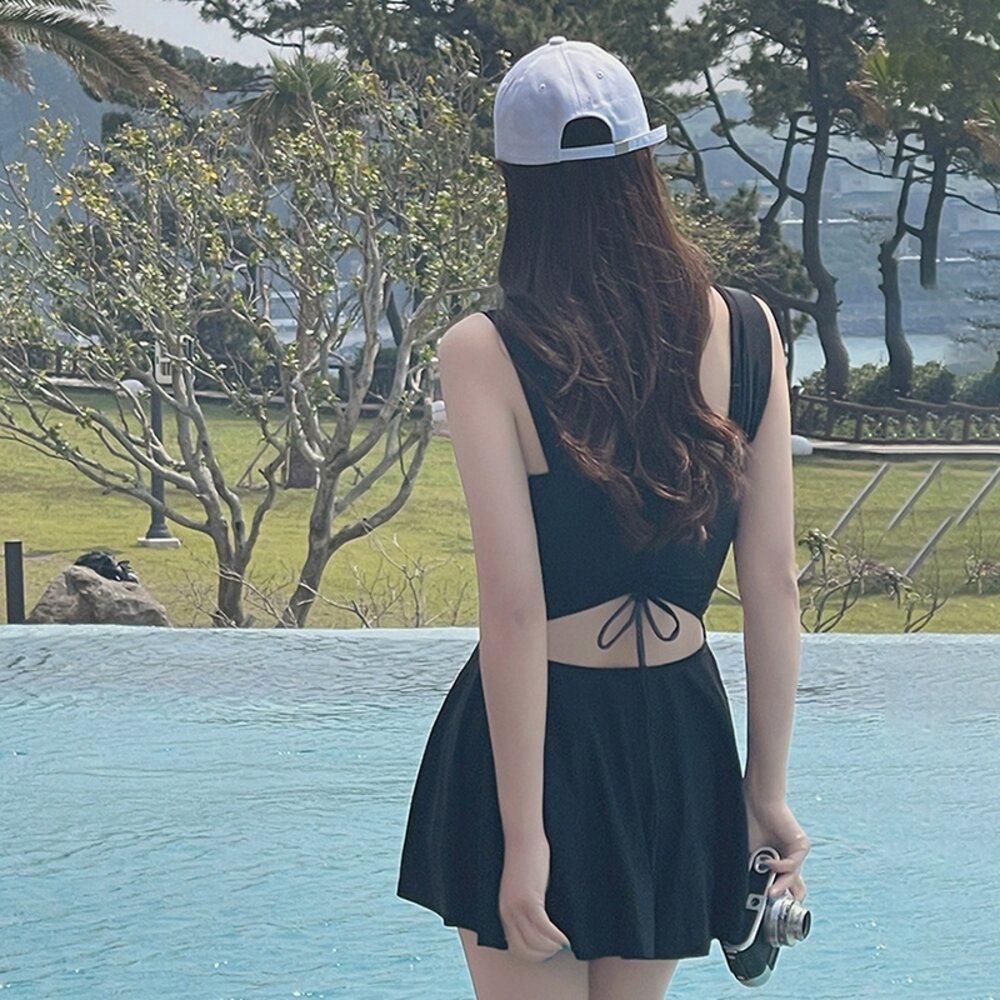 【台灣發貨】韓版露背百褶裙保守泳衣【S133】-圖片-7
