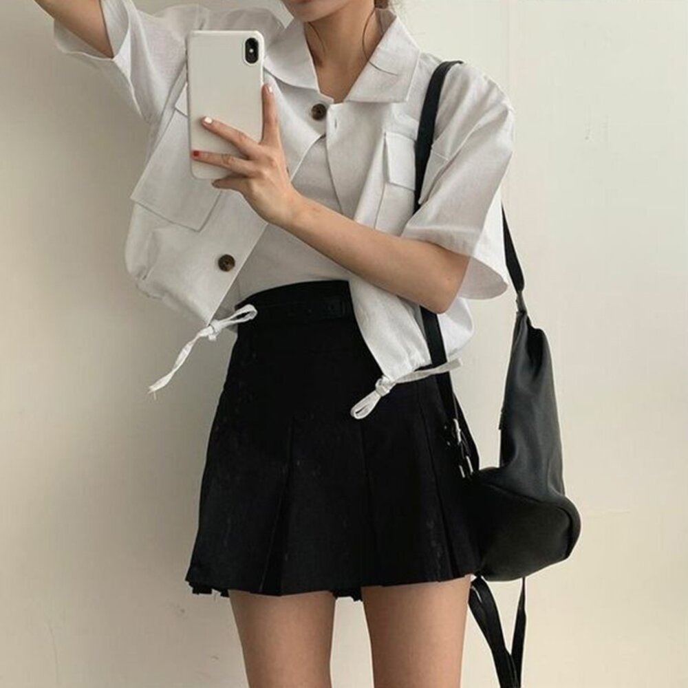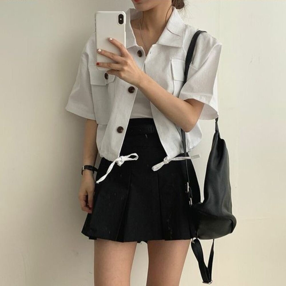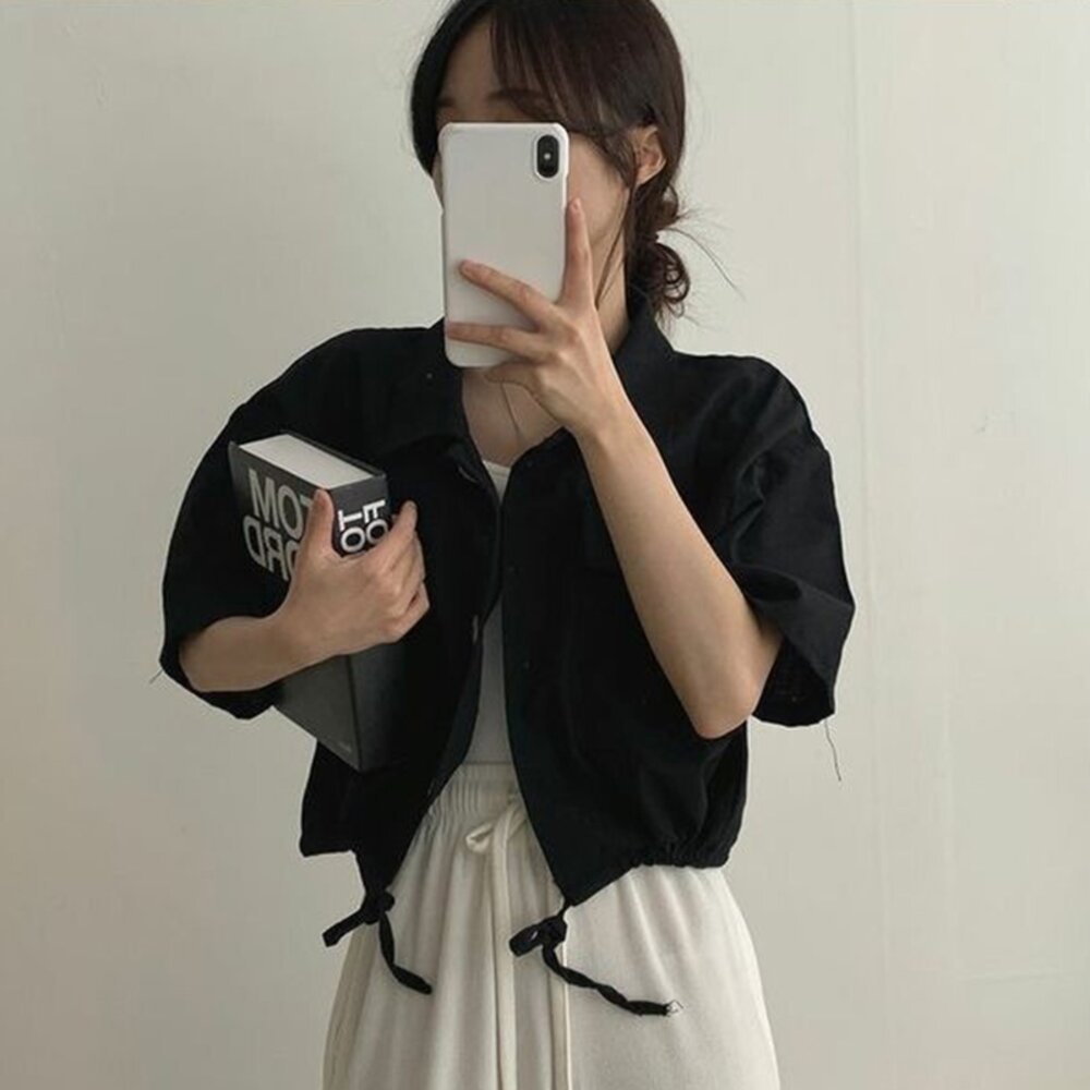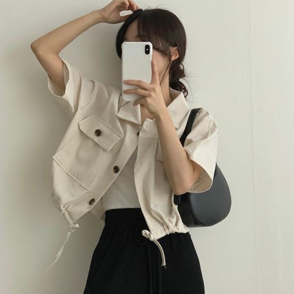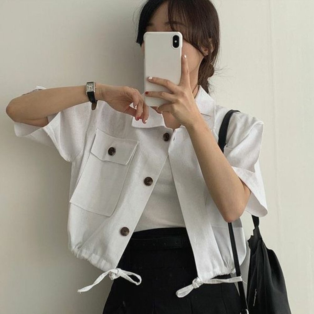尺寸: 衣長51 肩寬51 胸圍120 袖長18 材質:棉+聚酯纖維 洗滌方式+貼心提醒 商品尺寸皆為手工測量,誤差1-3cm皆為正常範圍 若商品有些線頭或是未開眼,再麻煩美女自行修剪以及開扣眼唷 任何衣服建議單獨洗滌,避免造成衣物顏色互染的情形 布料首次洗滌時易釋出染劑,屬於正常現象 商品勿長時間浸泡、勿使用漂白水、勿使用烘衣機