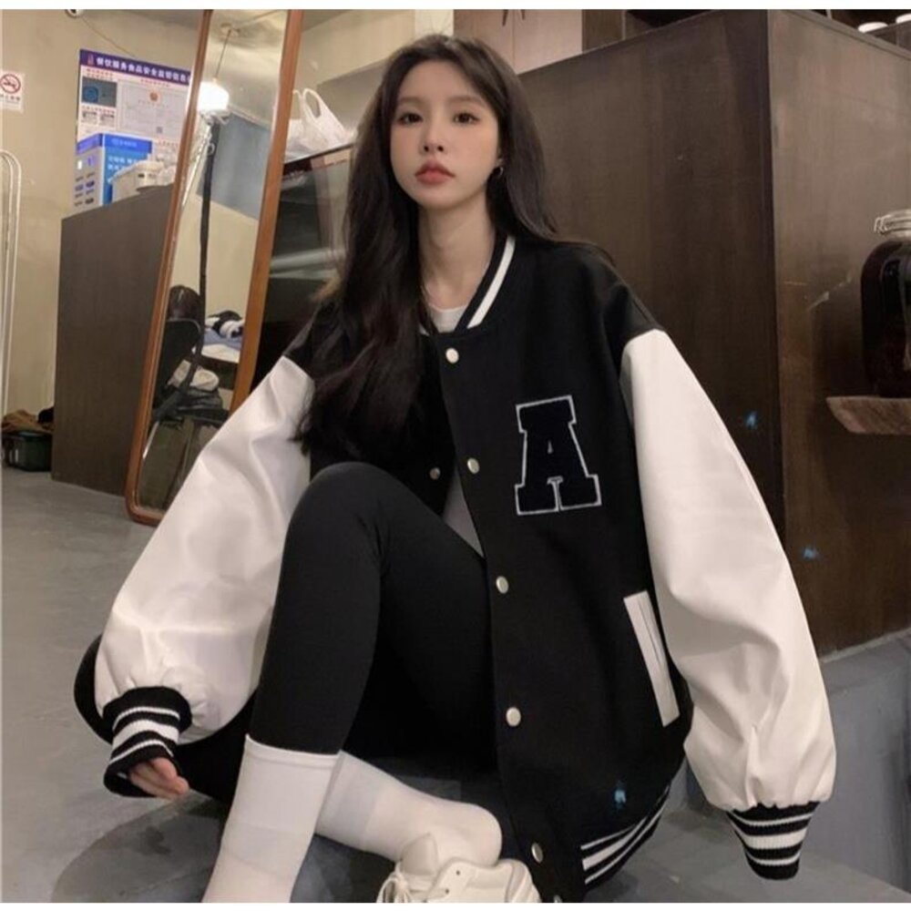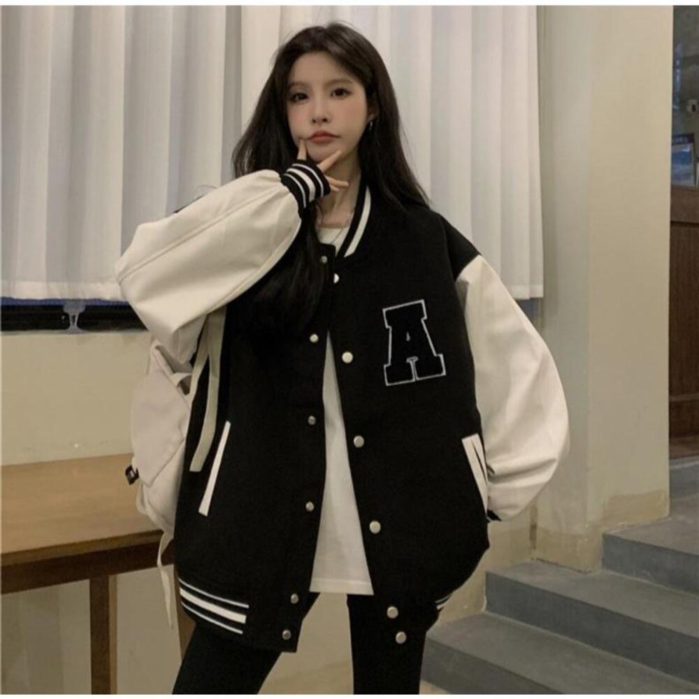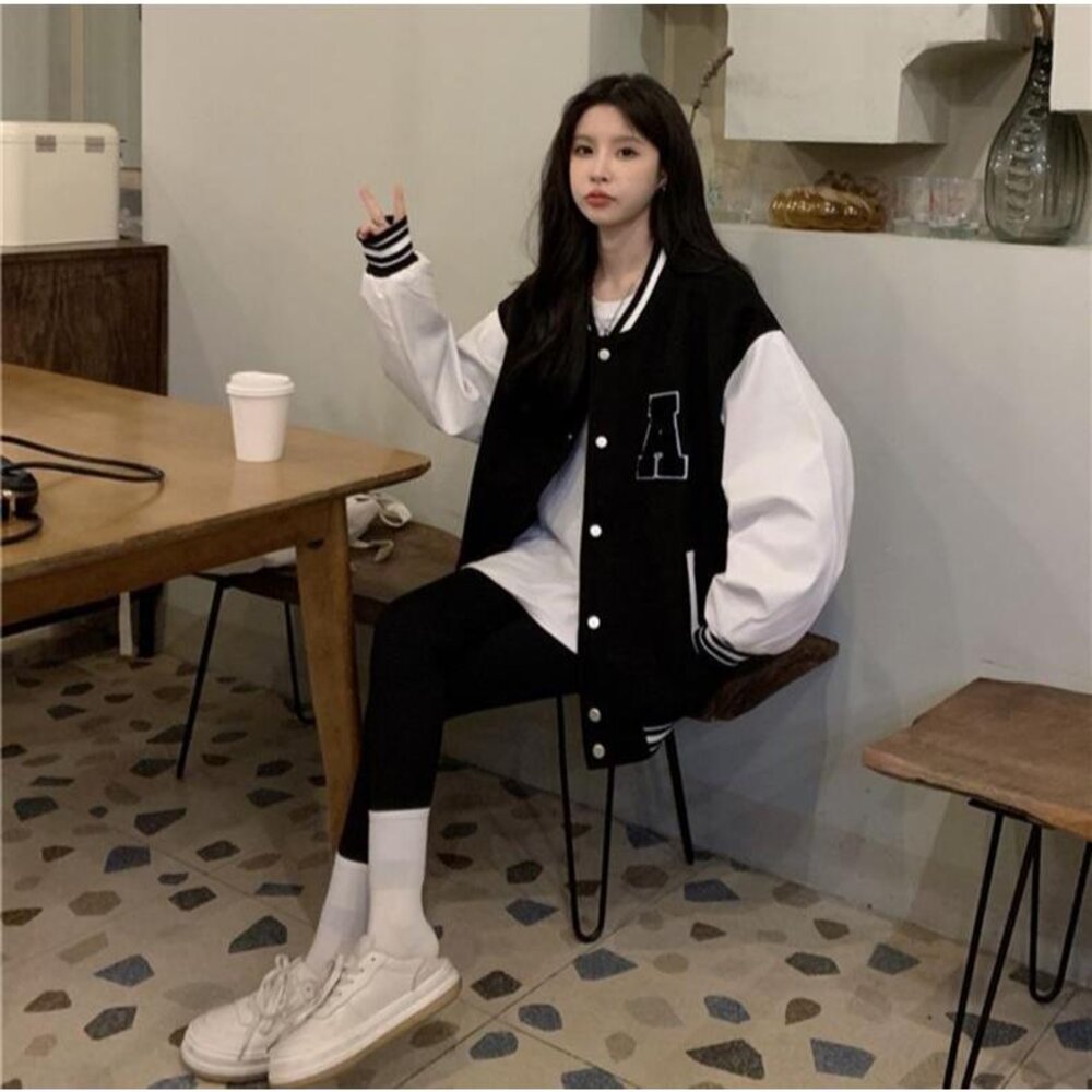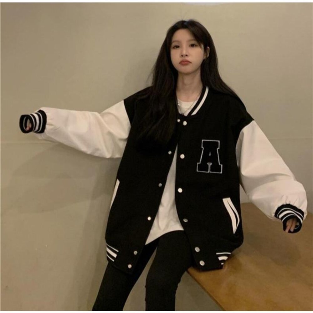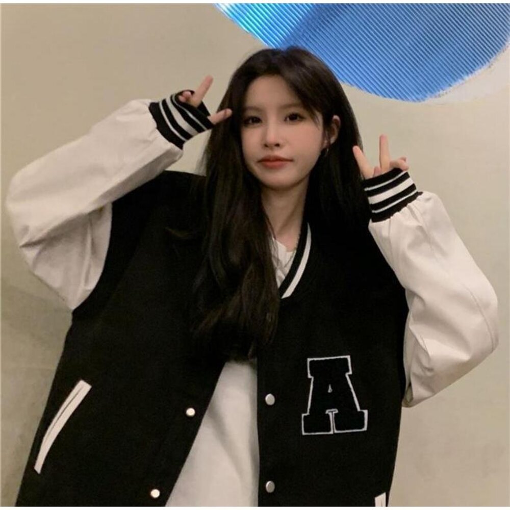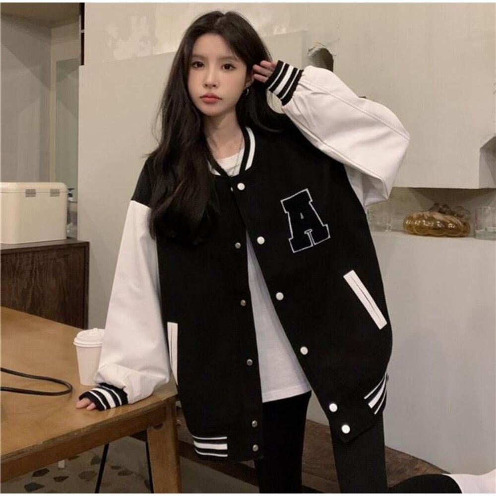 【台灣發貨】韓版刺繡慵懶風長版棒球外套 外套 防曬外套 女裝 上衣 衣服【J318】-圖片-1