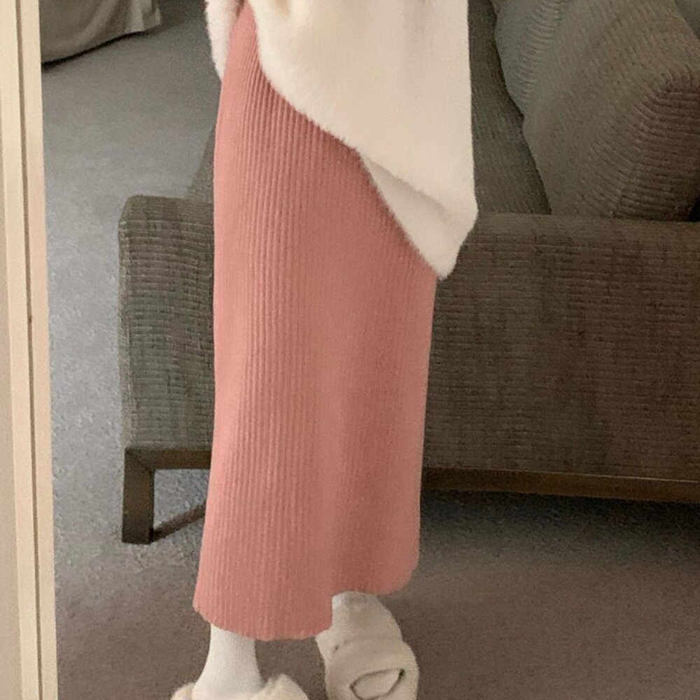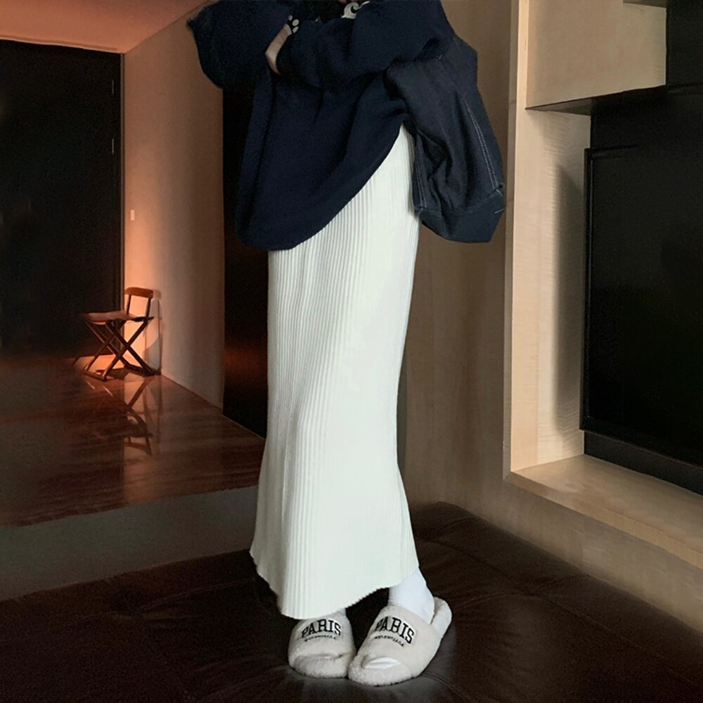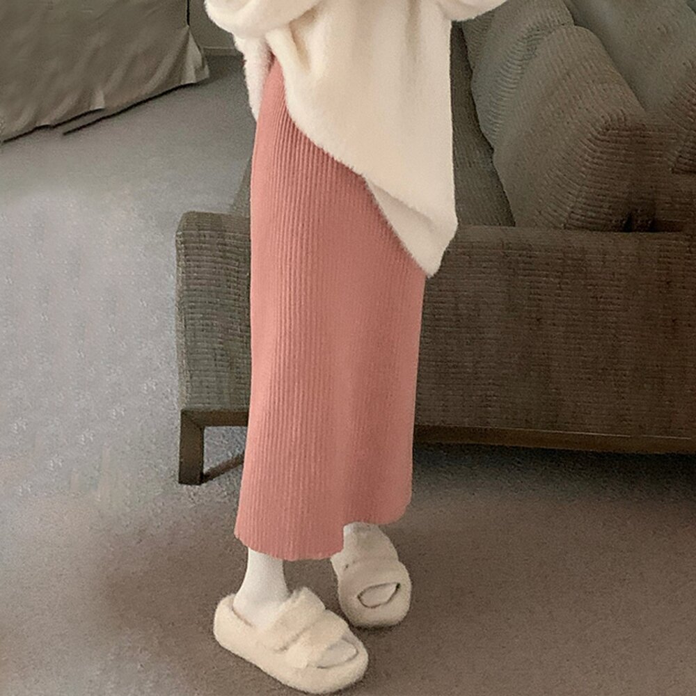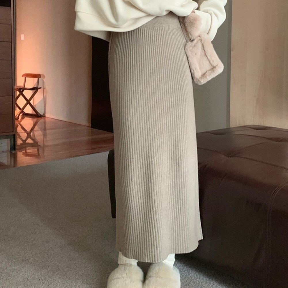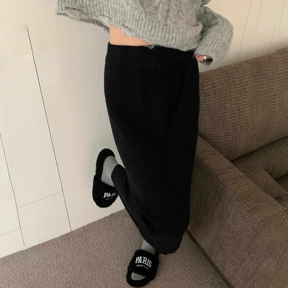 【台灣發貨】韓版高腰長款顯瘦針織半身裙 裙子 褲裙 長裙 女裝【P308】-圖片-7