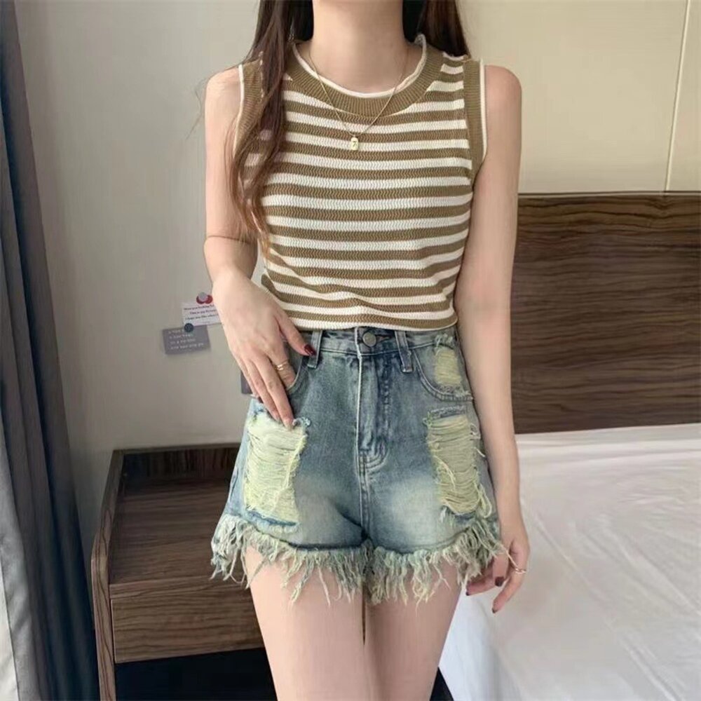 【台灣發貨】韓版條紋顯瘦針織背心 小可愛 背心 衣服 女裝 上衣【V417】-圖片-8