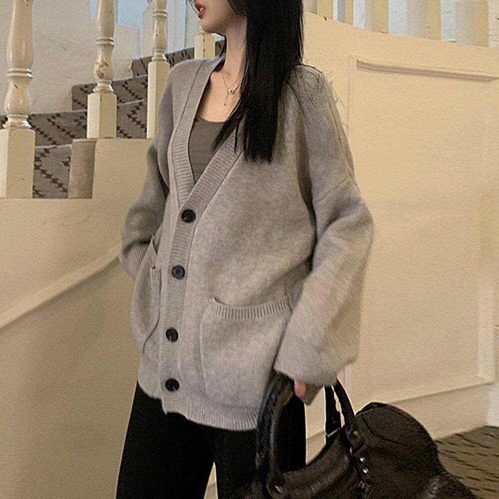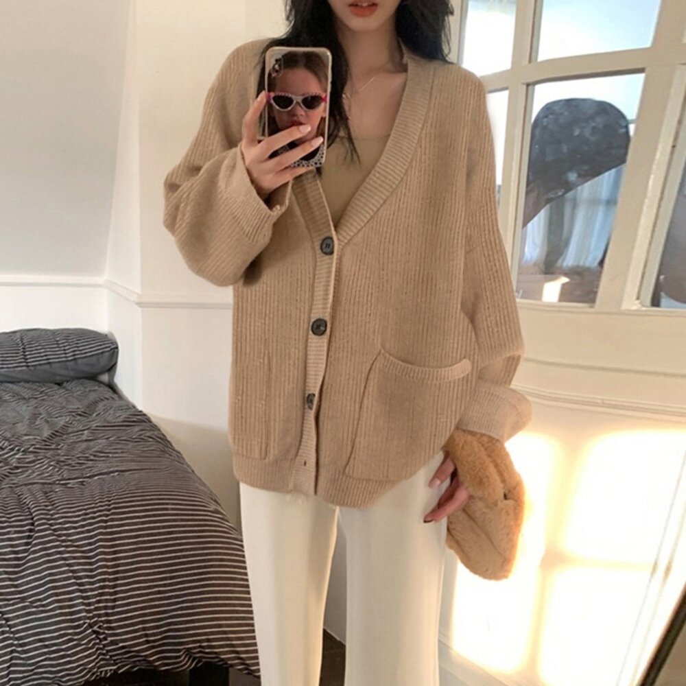 【台灣發貨】韓版慵懶復古針織外套 長袖上衣 長袖t恤 衣服 女裝 上衣【J288】-圖片-1