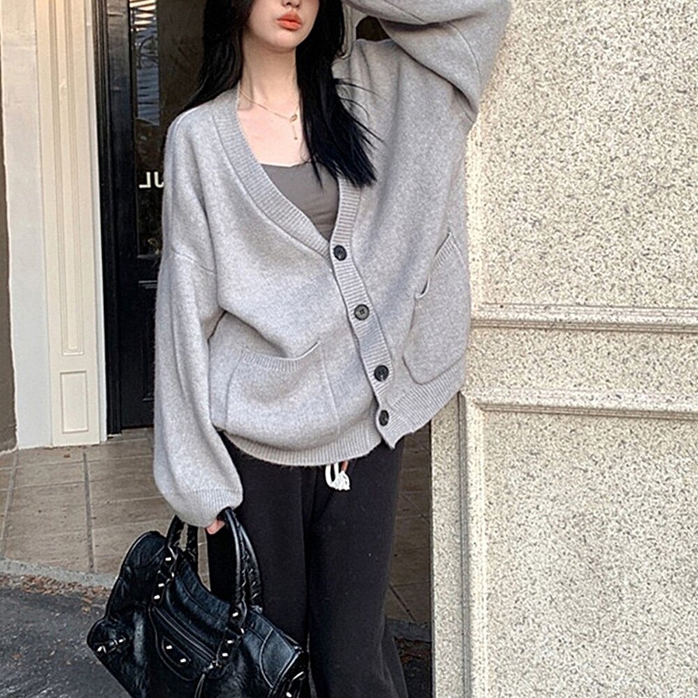 【台灣發貨】韓版慵懶復古針織外套 長袖上衣 長袖t恤 衣服 女裝 上衣【J288】 封面照片