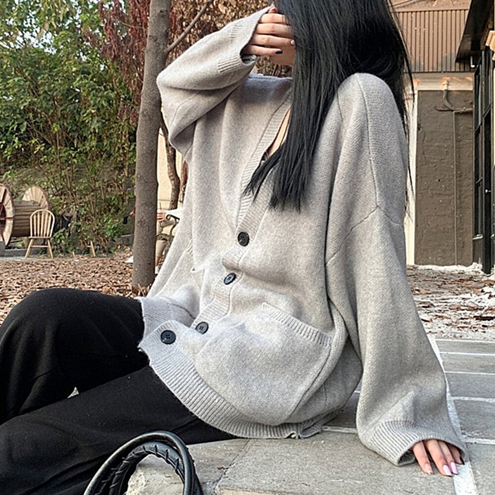 【台灣發貨】韓版慵懶復古針織外套 長袖上衣 長袖t恤 衣服 女裝 上衣【J288】-圖片-2