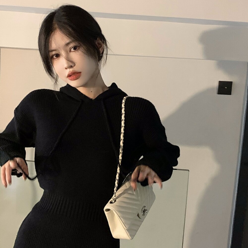 【台灣發貨】韓版修身顯瘦短裙連帽針織連衣裙 套裝 連身裙 吊帶裙 吊帶褲 女裝【S232】-圖片-6