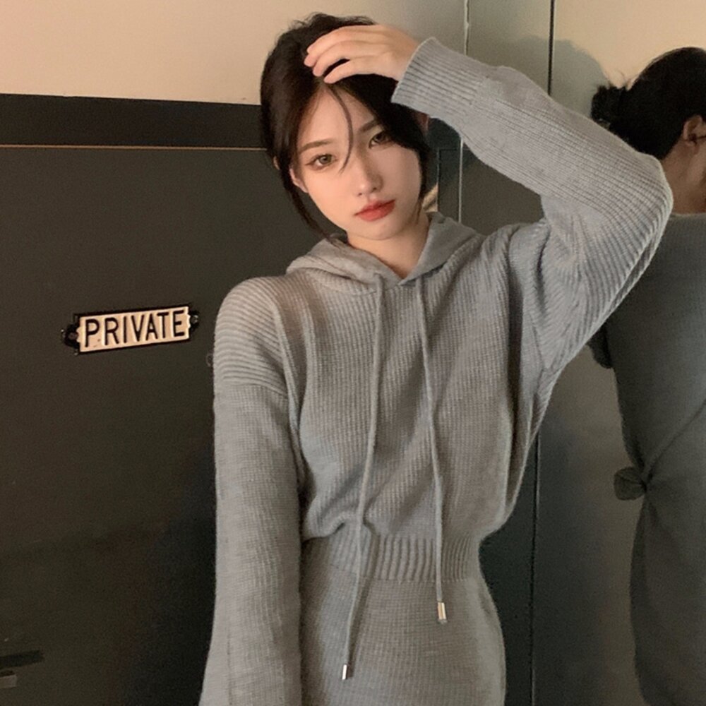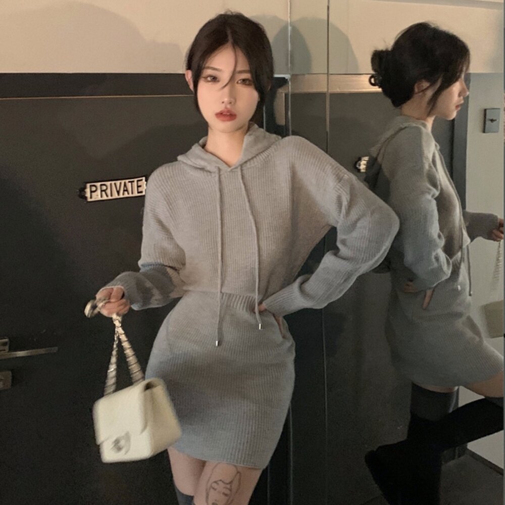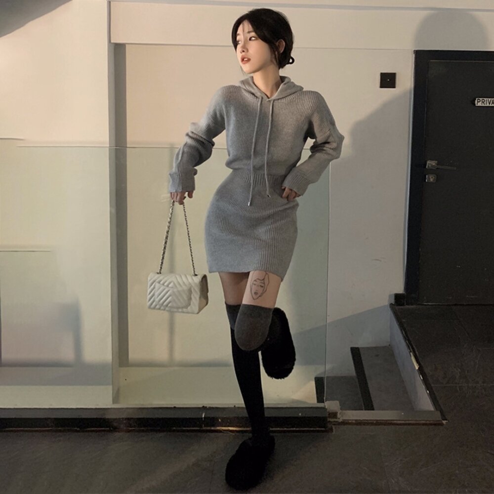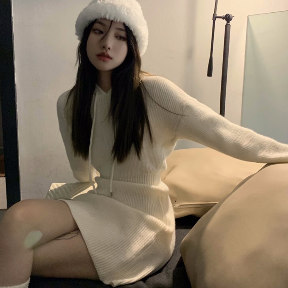 【台灣發貨】韓版修身顯瘦短裙連帽針織連衣裙 套裝 連身裙 吊帶裙 吊帶褲 女裝【S232】-圖片-8