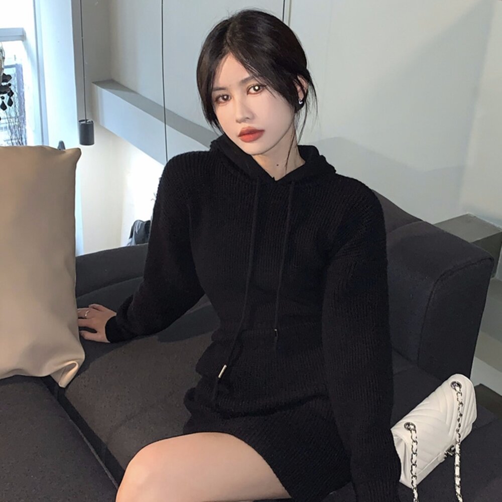 【台灣發貨】韓版修身顯瘦短裙連帽針織連衣裙 套裝 連身裙 吊帶裙 吊帶褲 女裝【S232】-圖片-1