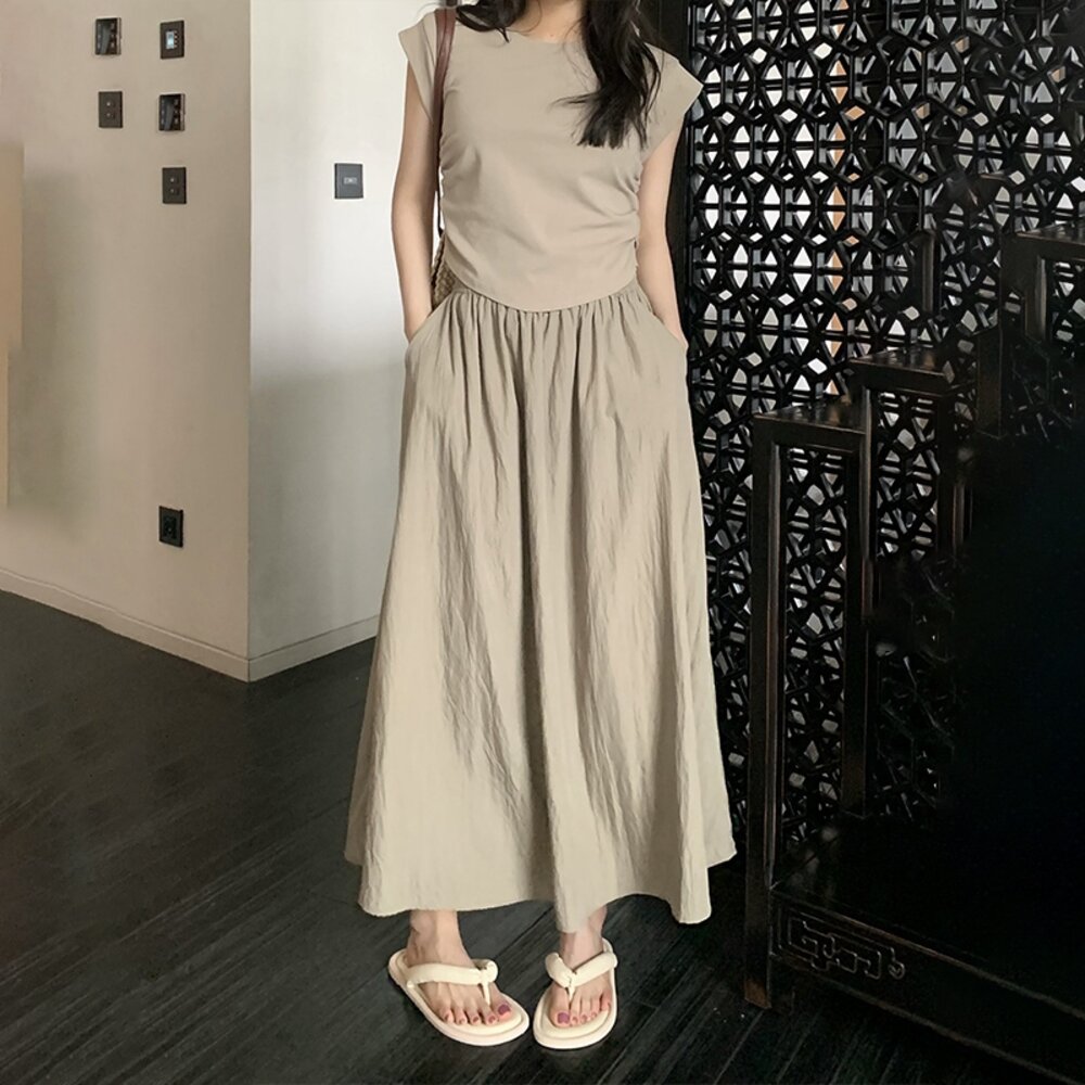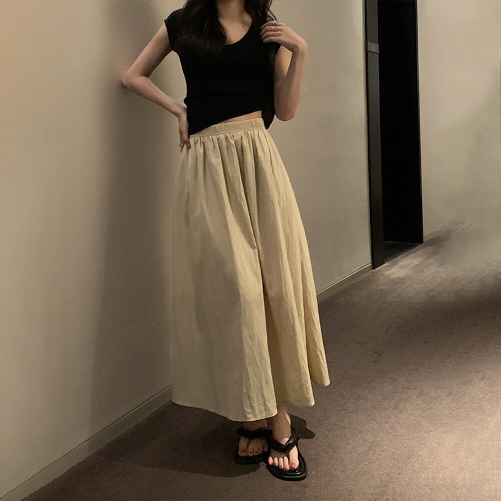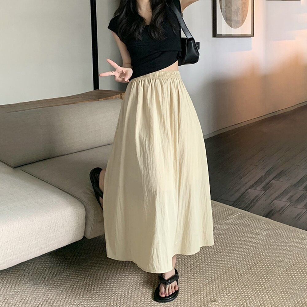 【台灣發貨】韓版高腰顯褶皺山本半身裙 裙子 褲裙 長裙 女裝【P342】-圖片-6