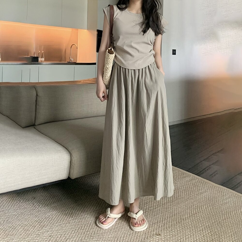 【台灣發貨】韓版高腰顯褶皺山本半身裙 裙子 褲裙 長裙 女裝【P342】-圖片-4