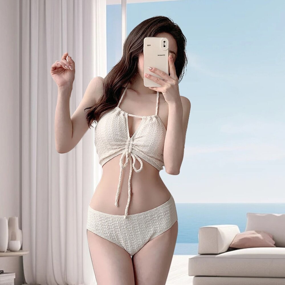 【台灣發貨】韓版高級感顯瘦三件式比基尼 帶胸墊 連身裙 吊帶裙 吊帶褲 女裝【S133】-圖片-7