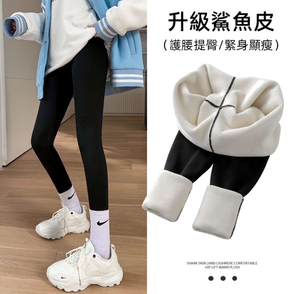 【台灣發貨】韓版高腰顯瘦加厚內刷毛鯊魚褲 寬褲 褲子 女裝【P140】 封面照片