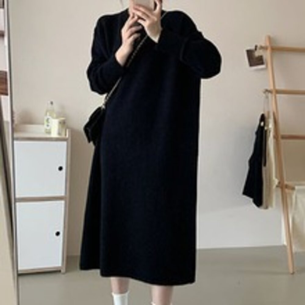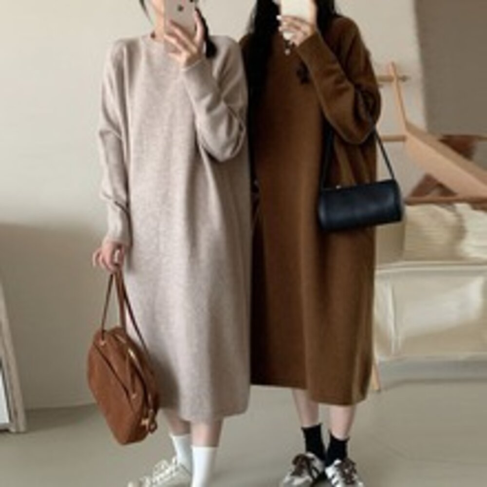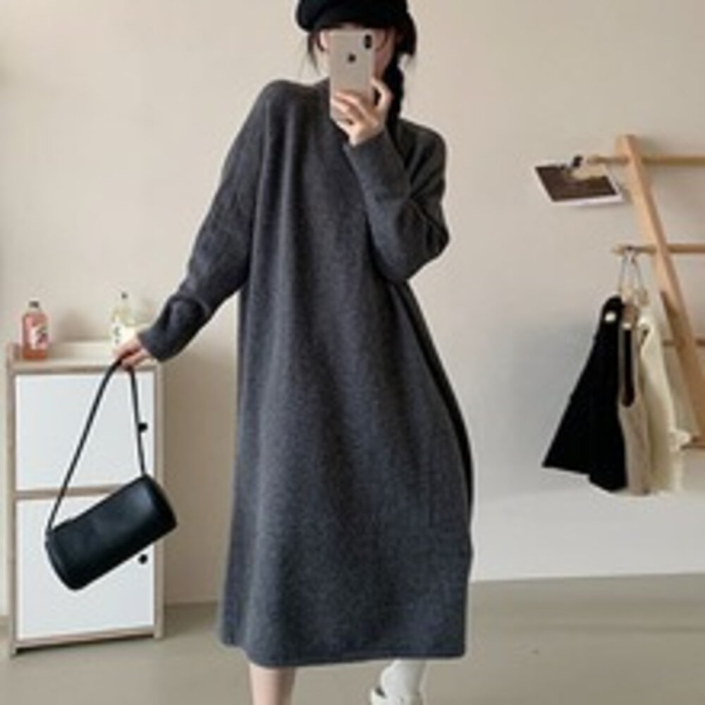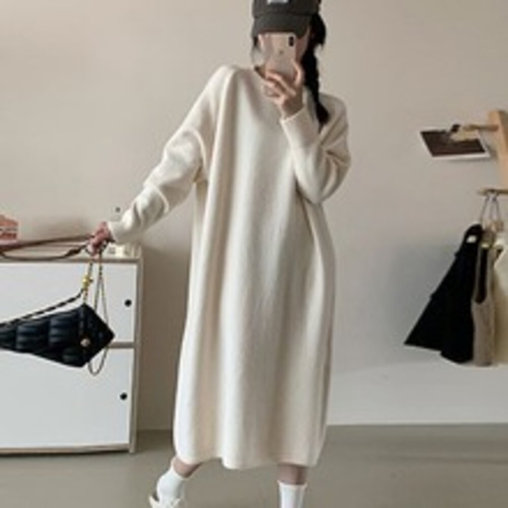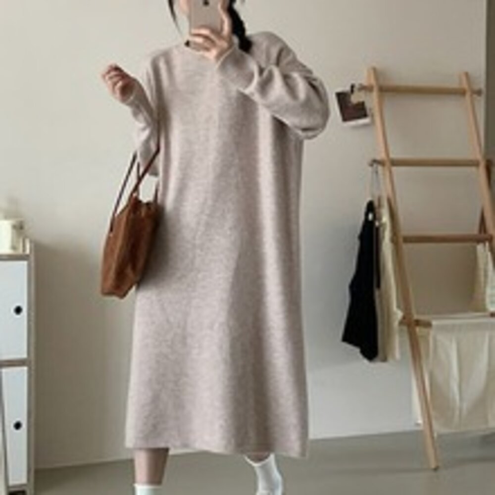 【台灣發貨】韓版氣質圓領寬鬆休閒長袖針織洋裝 連身裙 吊帶裙 吊帶褲 女裝【S350】-圖片-6