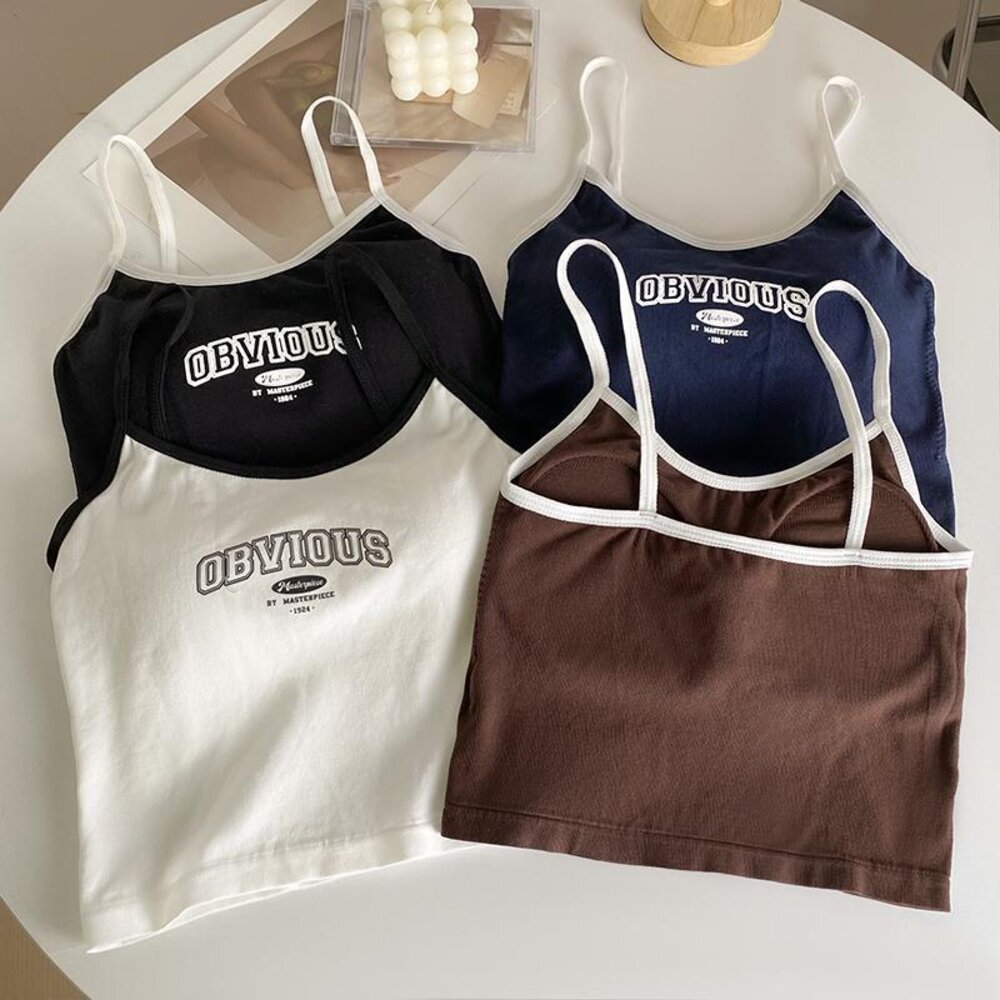 【台灣發貨】韓版字母運動背心 帶胸墊免穿內衣 小可愛 背心 衣服 女裝 上衣【V397】-圖片-8
