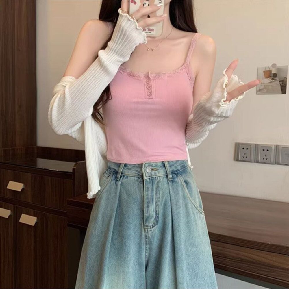 帶胸墊免穿內衣 小可愛 背心 衣服 女裝 上衣【V359】