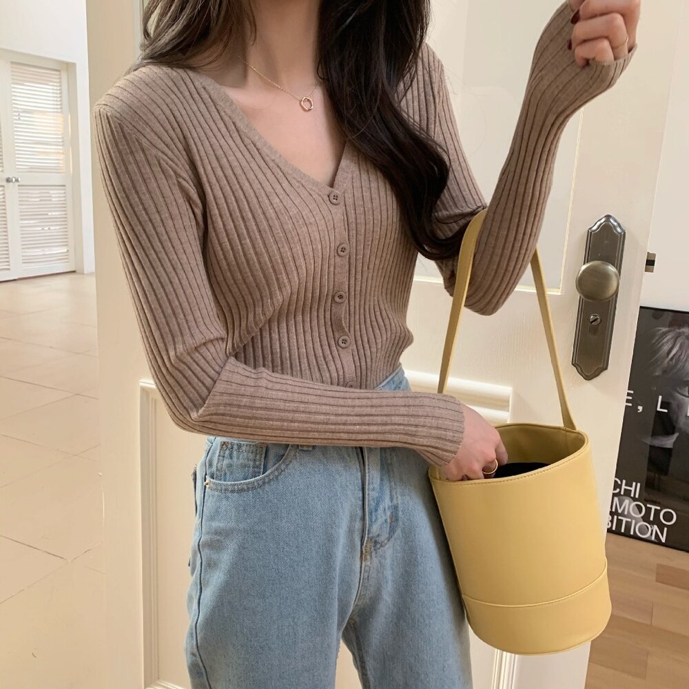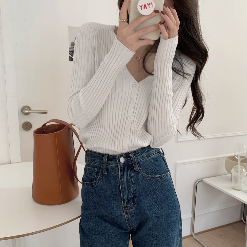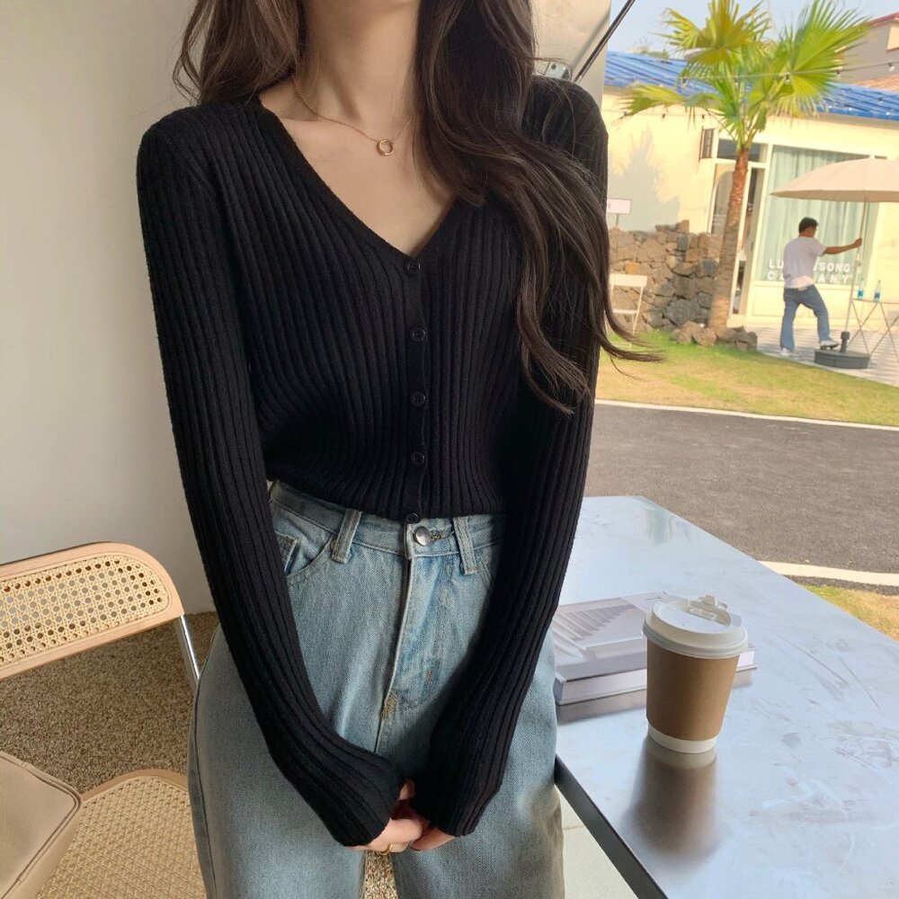 【台灣發貨】韓版顯瘦V領針織外套 外套 防曬外套 女裝 上衣 衣服【J251】-圖片-1