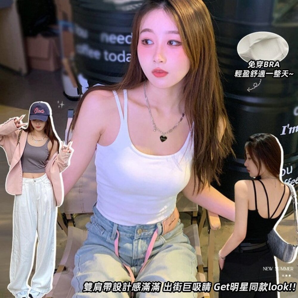 帶胸墊免穿內衣 小可愛 背心 衣服 女裝 上衣【V395】