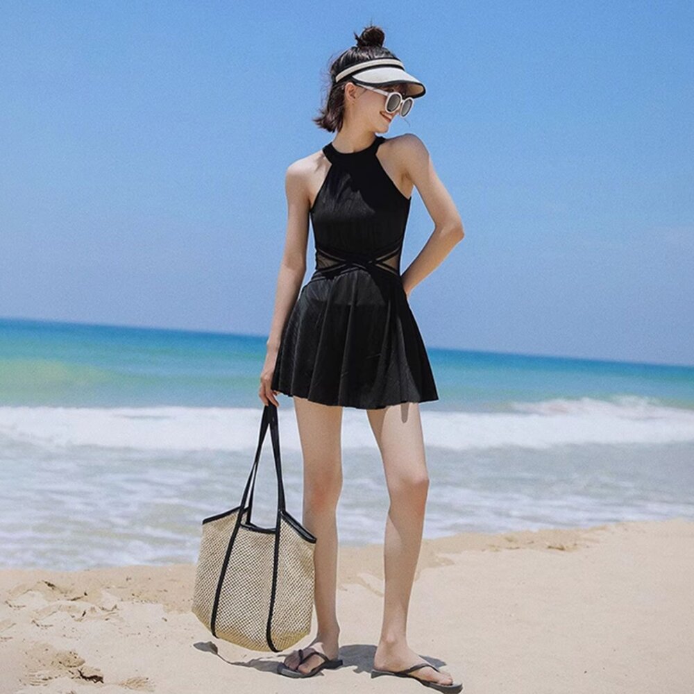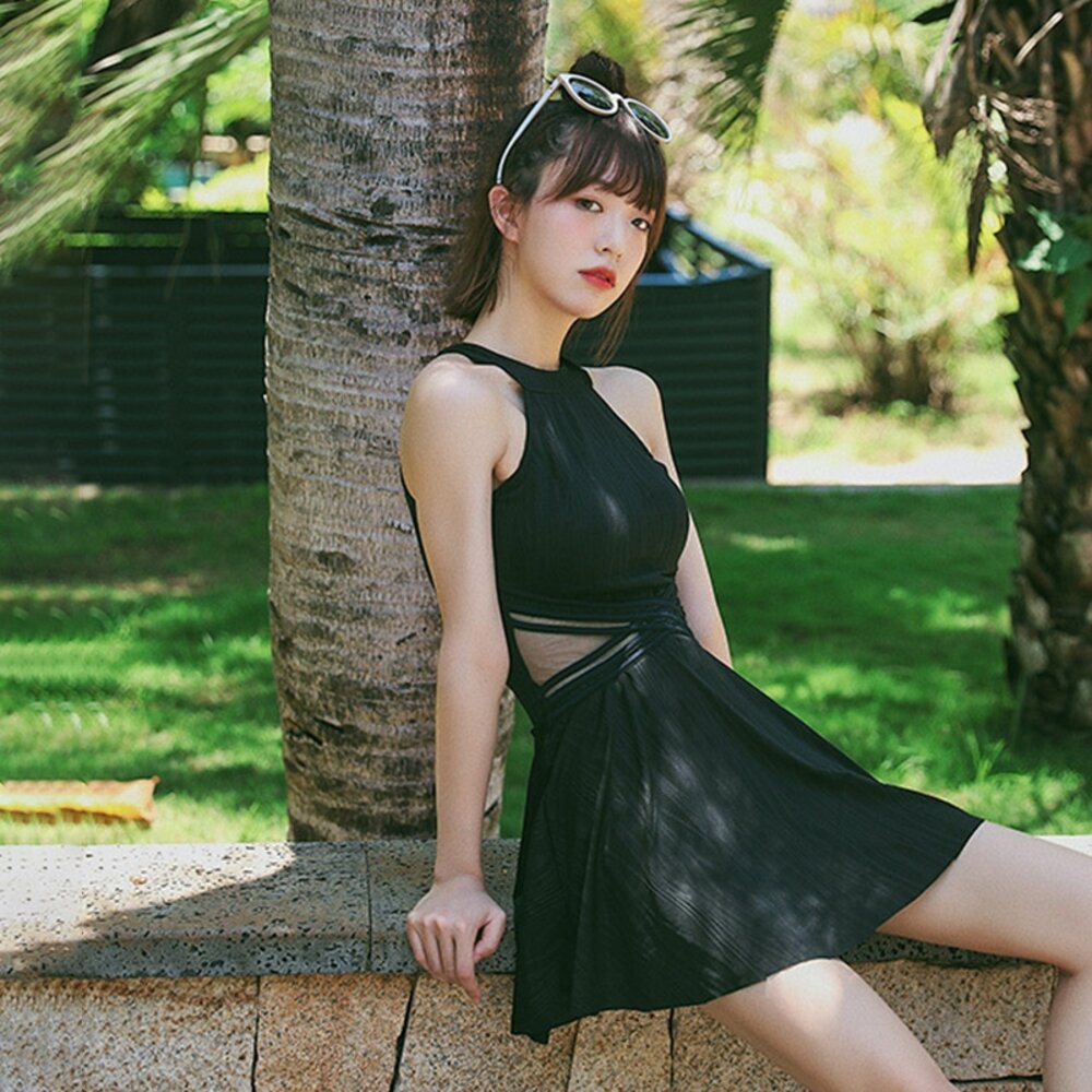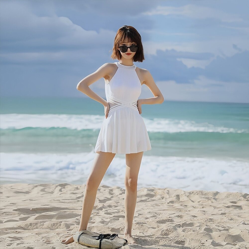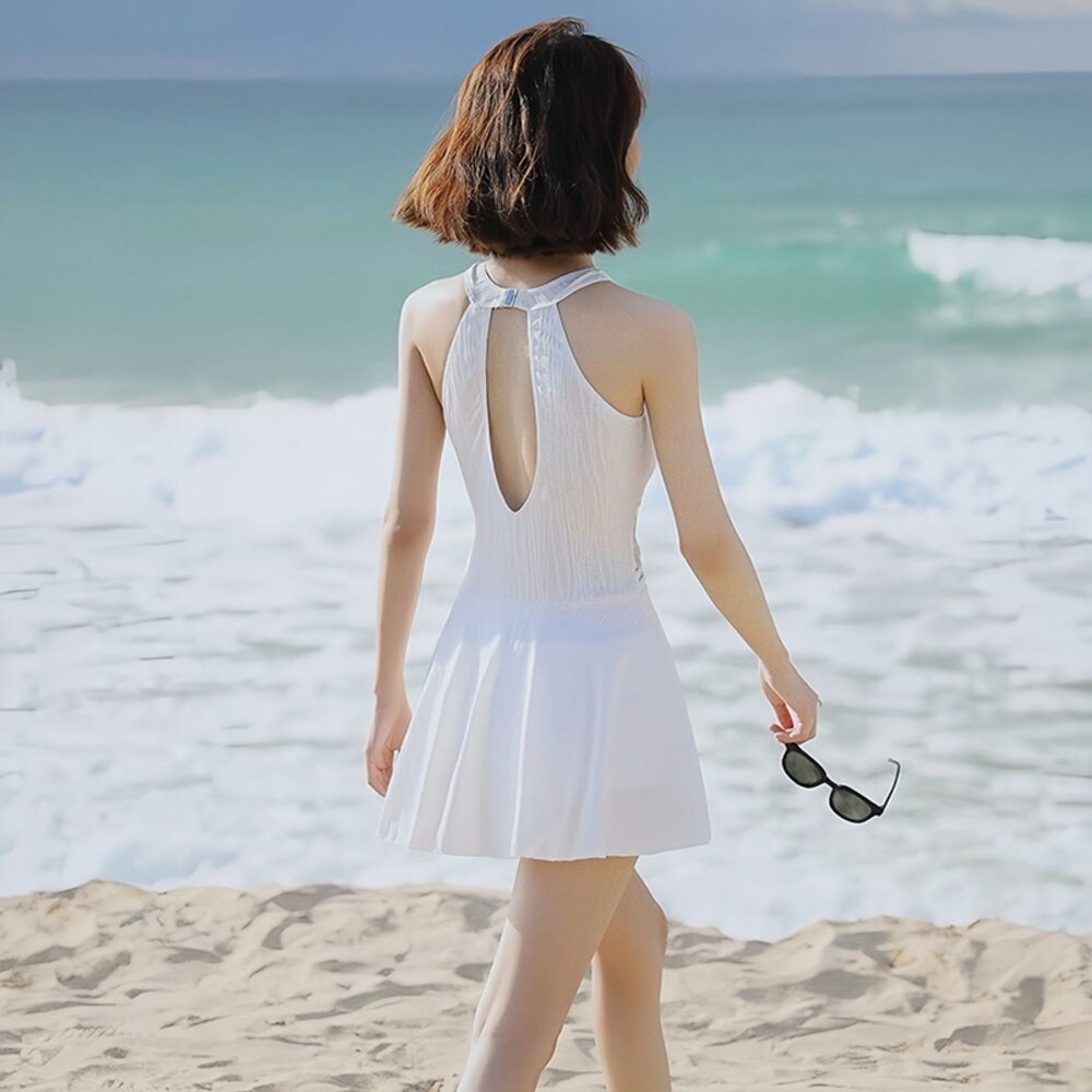 【台灣發貨】韓版露背百褶裙連身裙泳裝 帶胸墊 連身裙 吊帶裙 吊帶褲 女裝【S133】-圖片-1