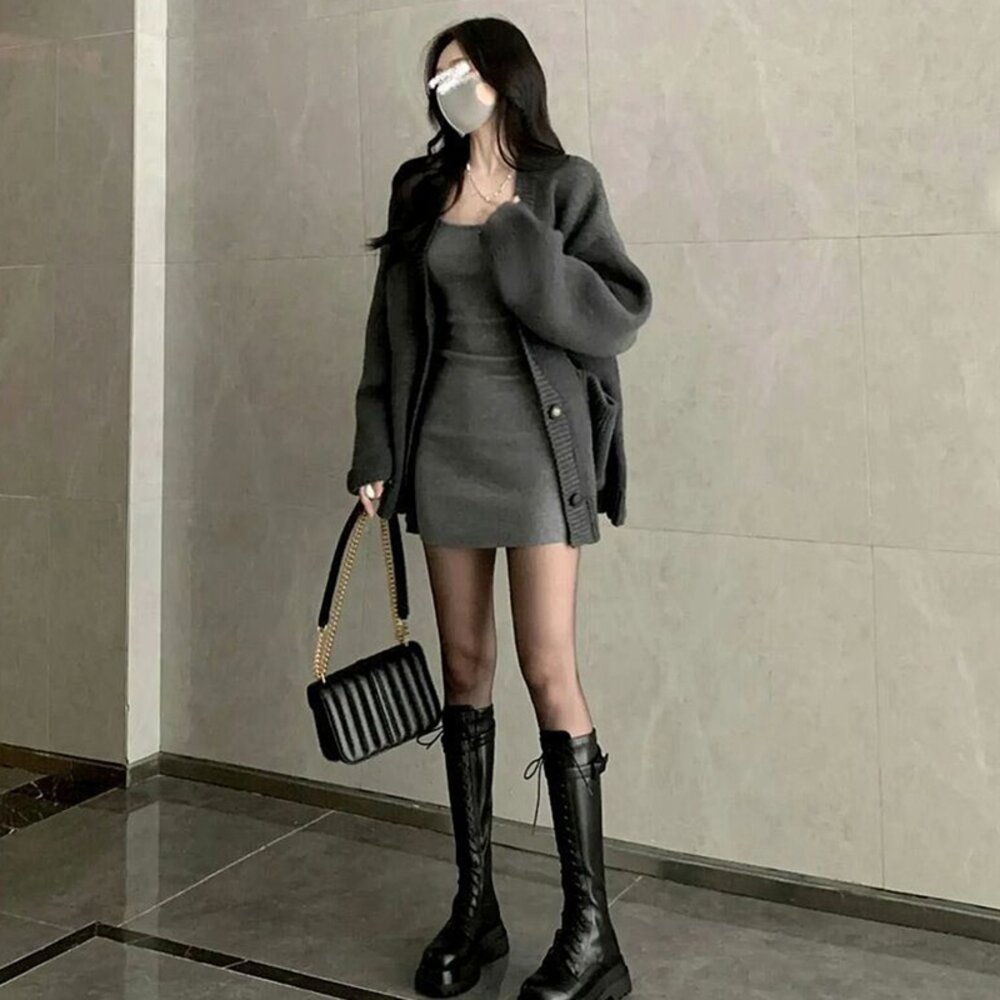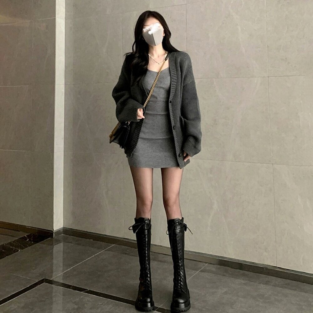 【台灣發貨】韓版慵懶風復古長版針織外套 長袖上衣 長袖t恤 衣服 女裝 上衣【J288】 封面照片