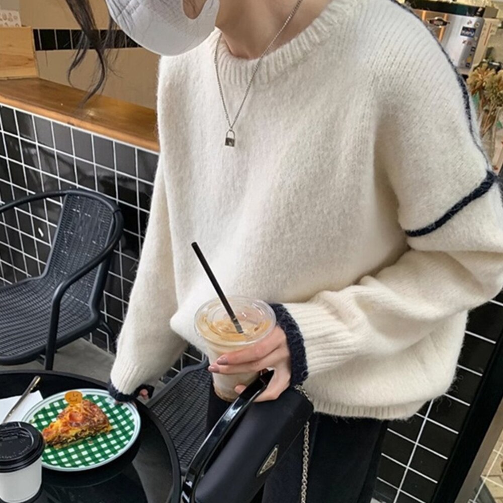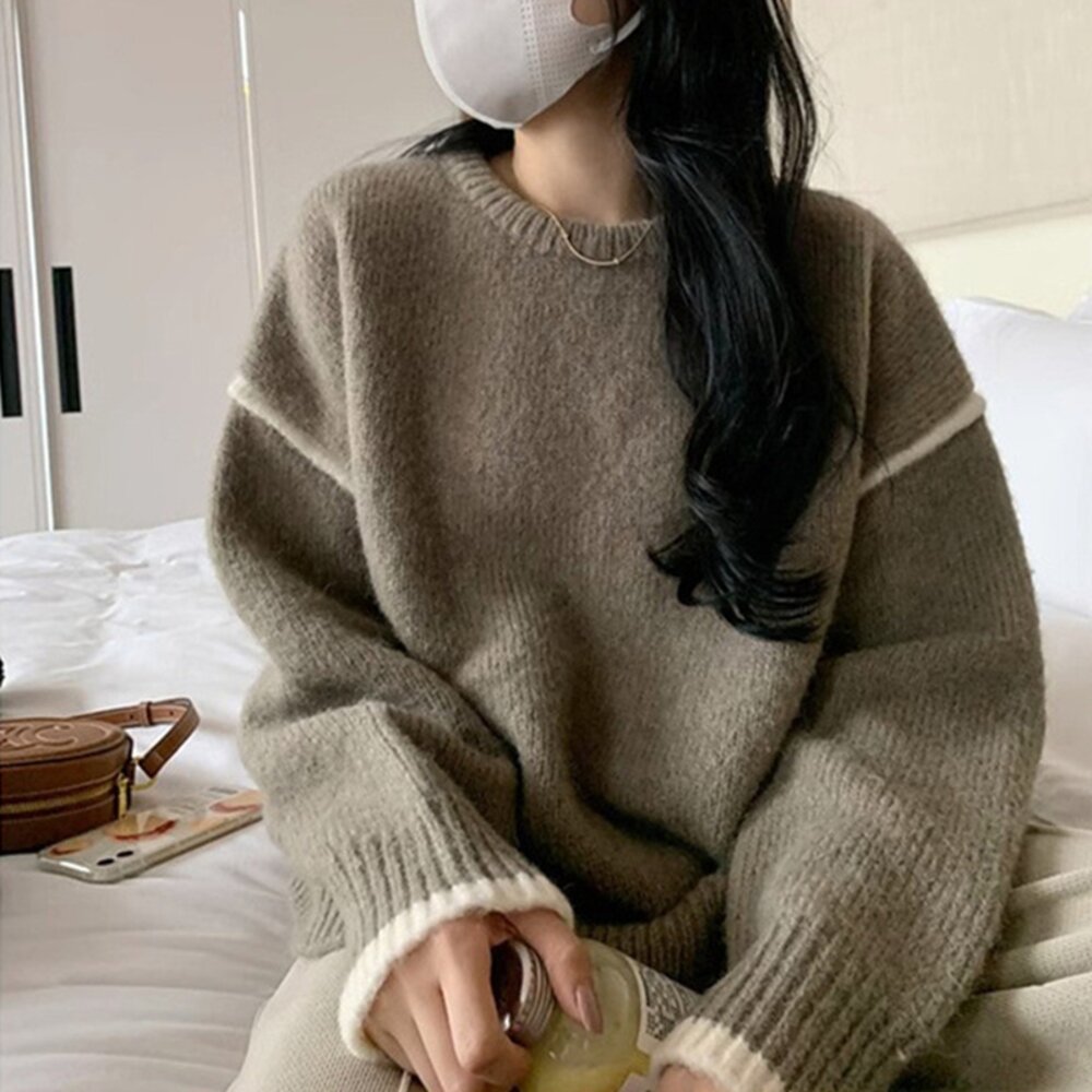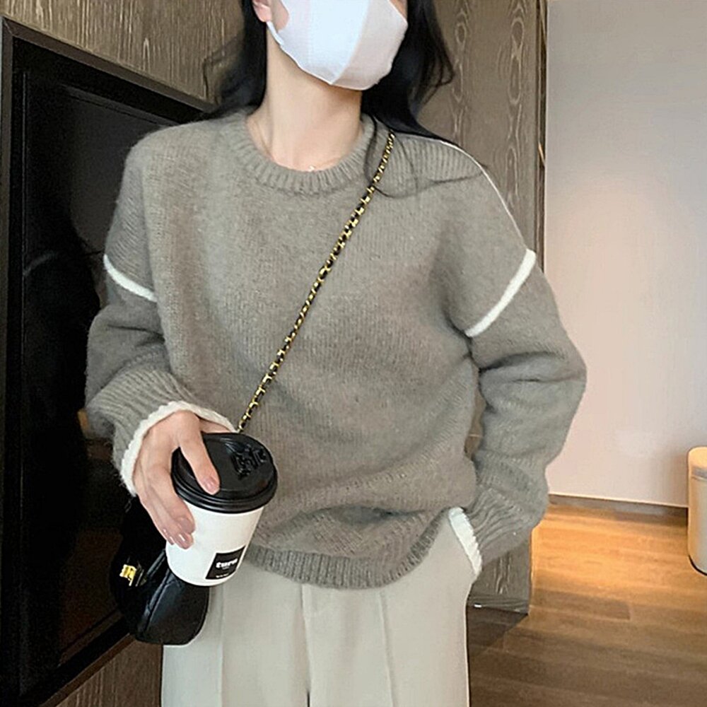 【台灣發貨】韓版寬鬆慵懶風圓領針織上衣 長袖上衣 長袖t恤 衣服 女裝 上衣【W525】-圖片-1